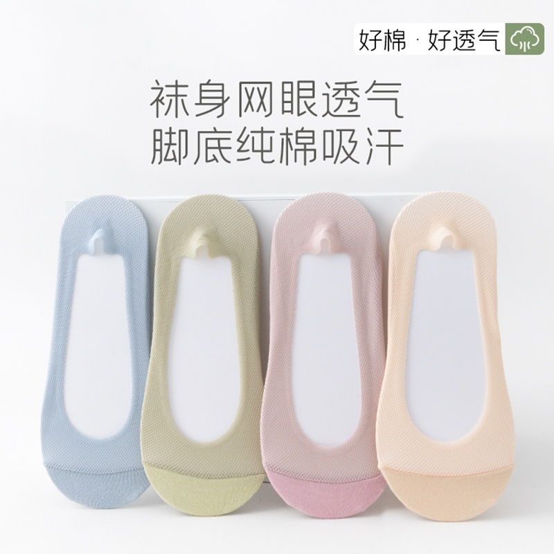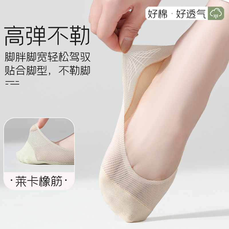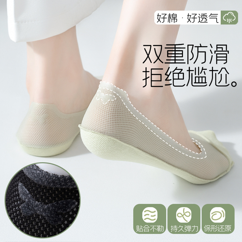 春夏女士浅口冰丝隐形船袜夏季 不掉跟 裸感防滑吸汗棉底防臭超薄款