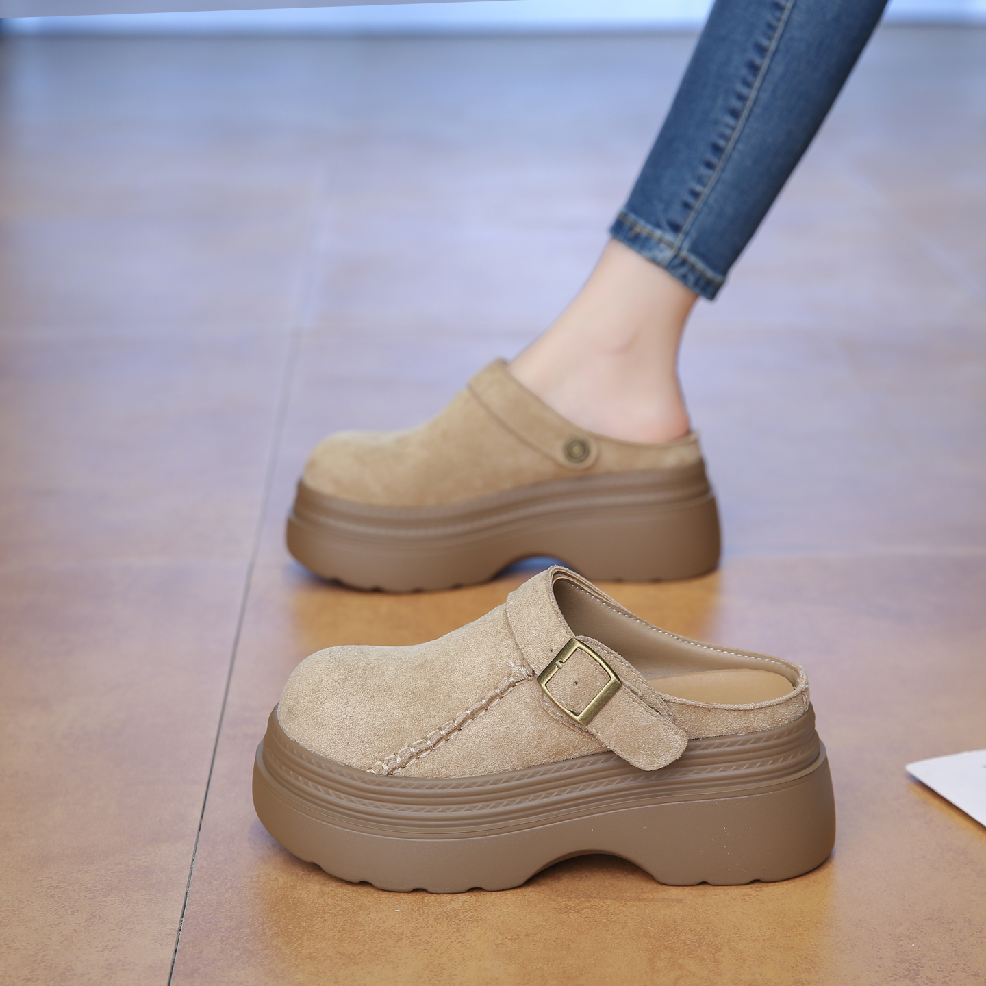 外穿 两穿休闲一脚蹬懒人包头半拖鞋 厚底增高勃肯鞋 女2025春秋新款