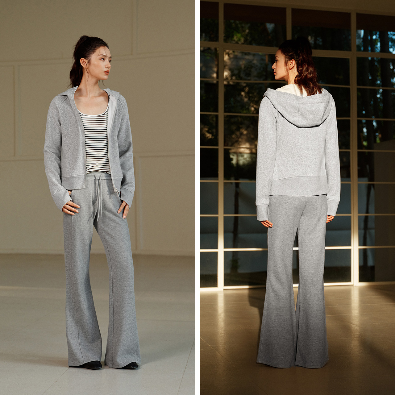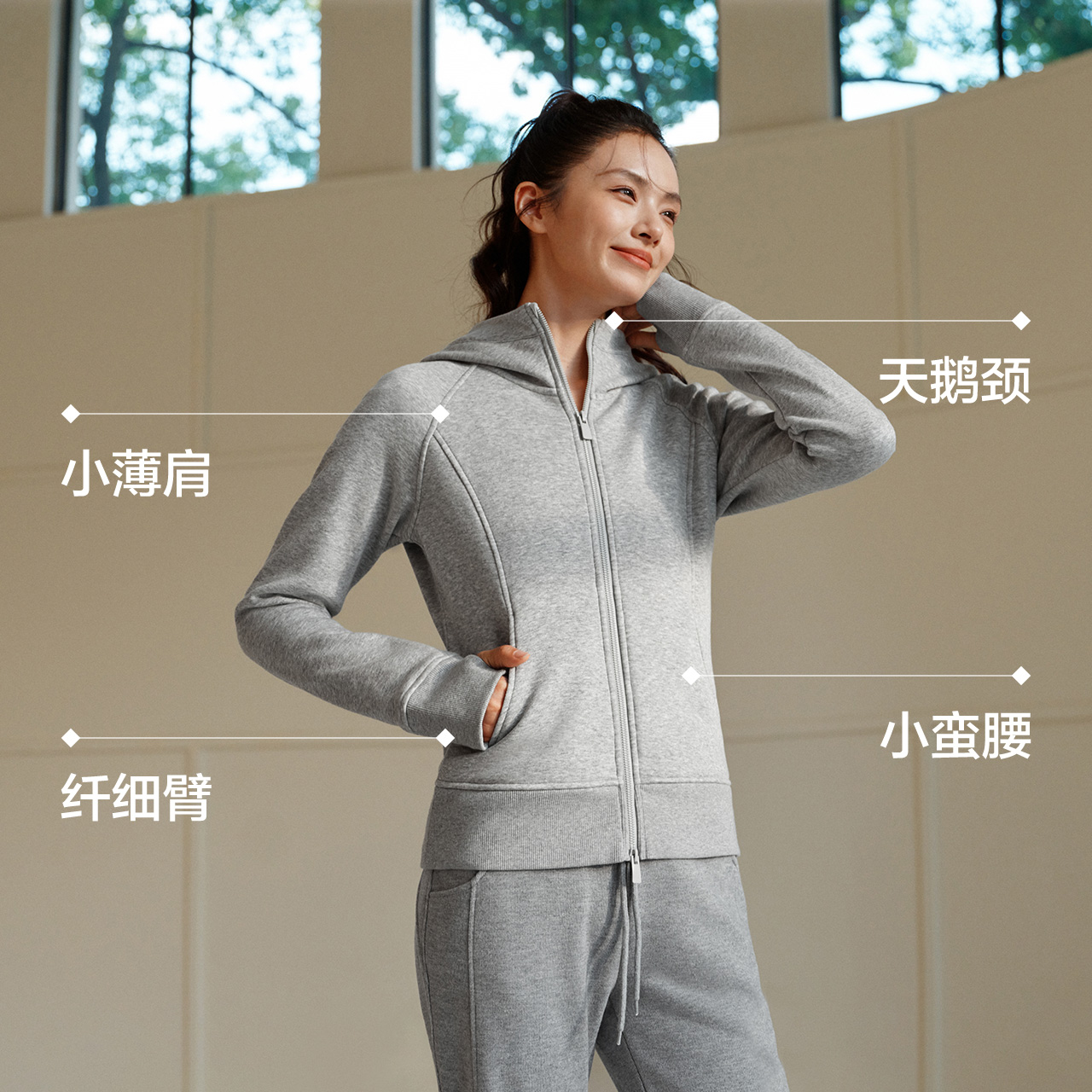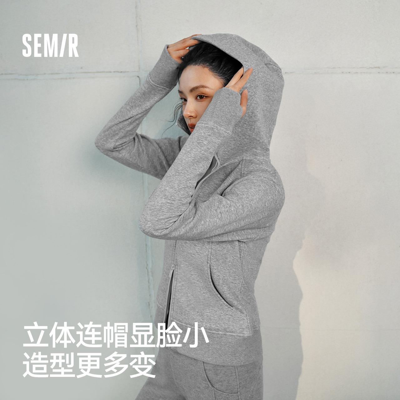 显瘦休闲夹克女装 紧身抓毛2025新款 卫衣分割插肩袖 森马外套女冬季