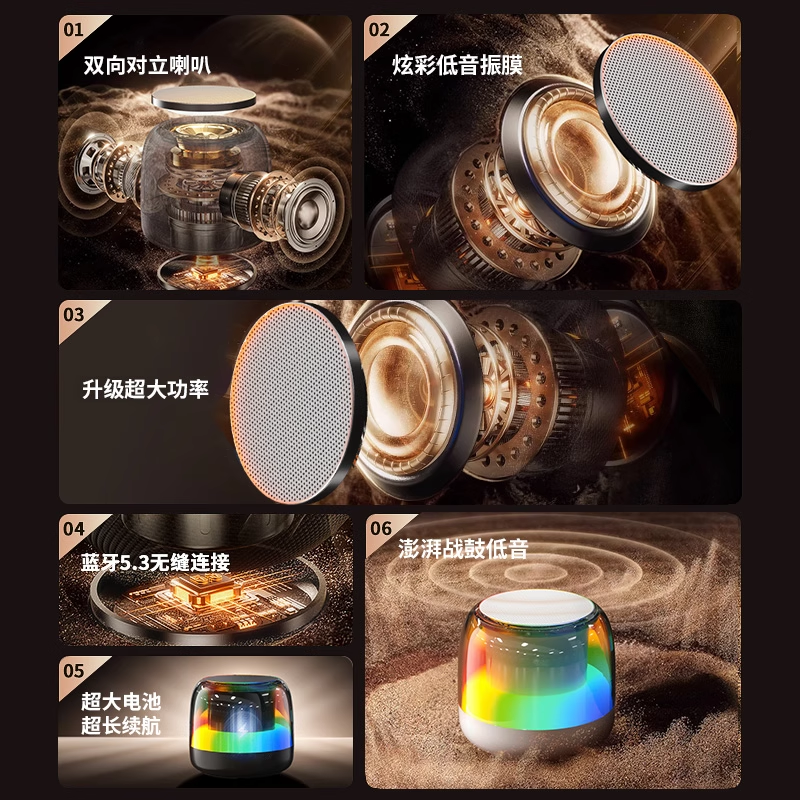 迷你便携炫彩无线蓝牙音箱智能高音质音响插卡便携式 低音炮七彩灯