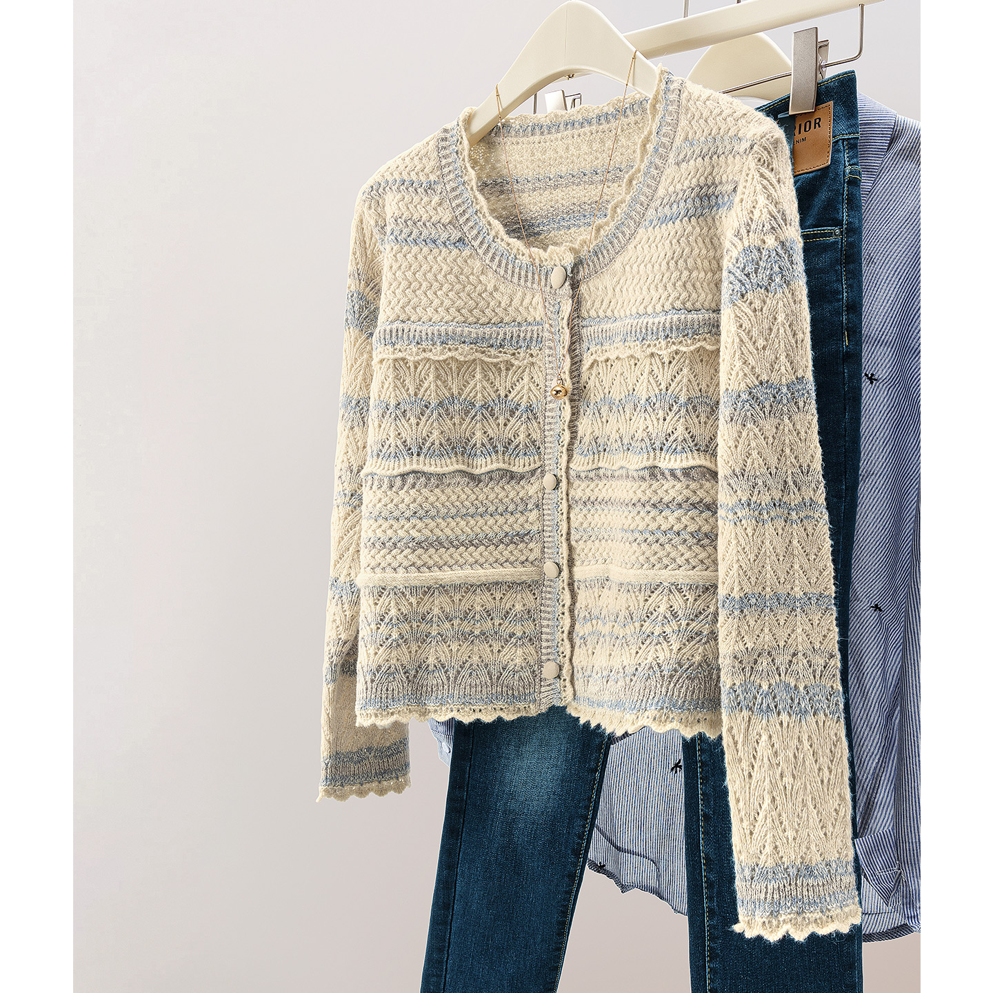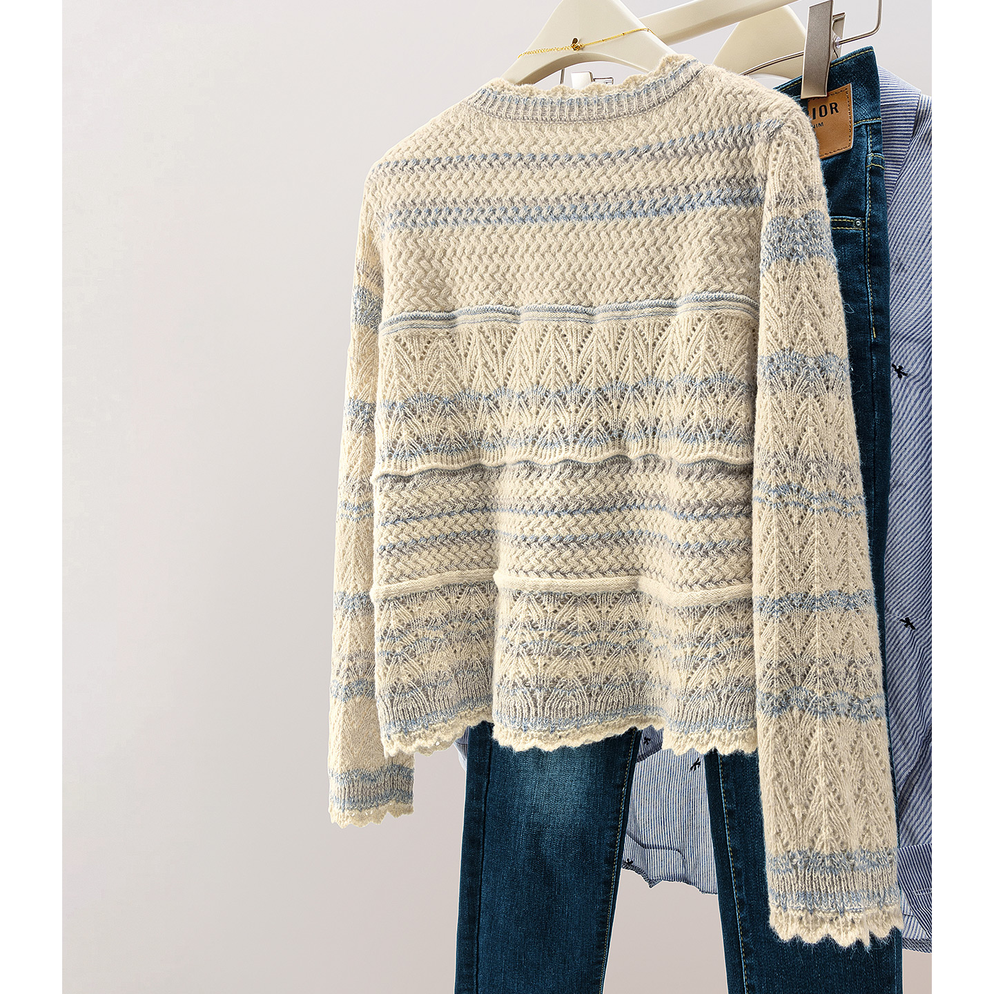 2025秋装 甜美拼色单排扣短款 新款 宽松款 上衣 女装 她池圆领针织衫