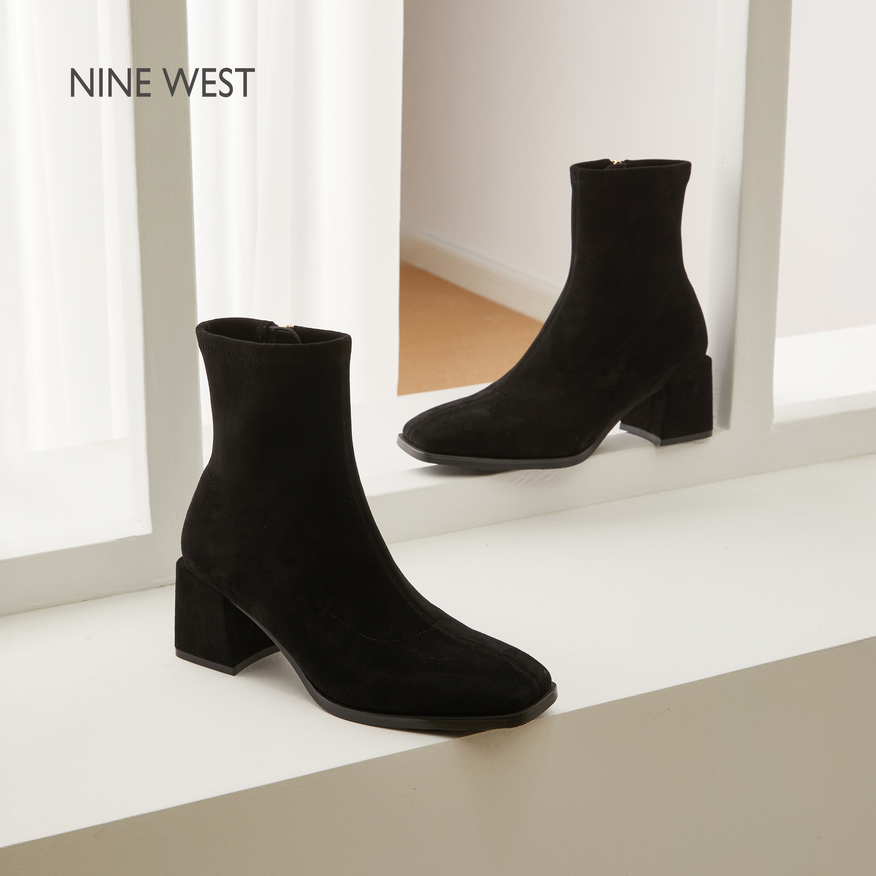 气质瘦瘦靴 玖熙典韵适履绒面粗跟弹力靴女2025秋冬新款 Nine West