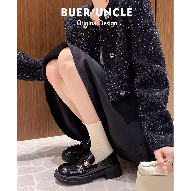 复古浅口单鞋 BeauToday真皮乐福鞋 英伦风黑色小皮鞋 2025新款 女款