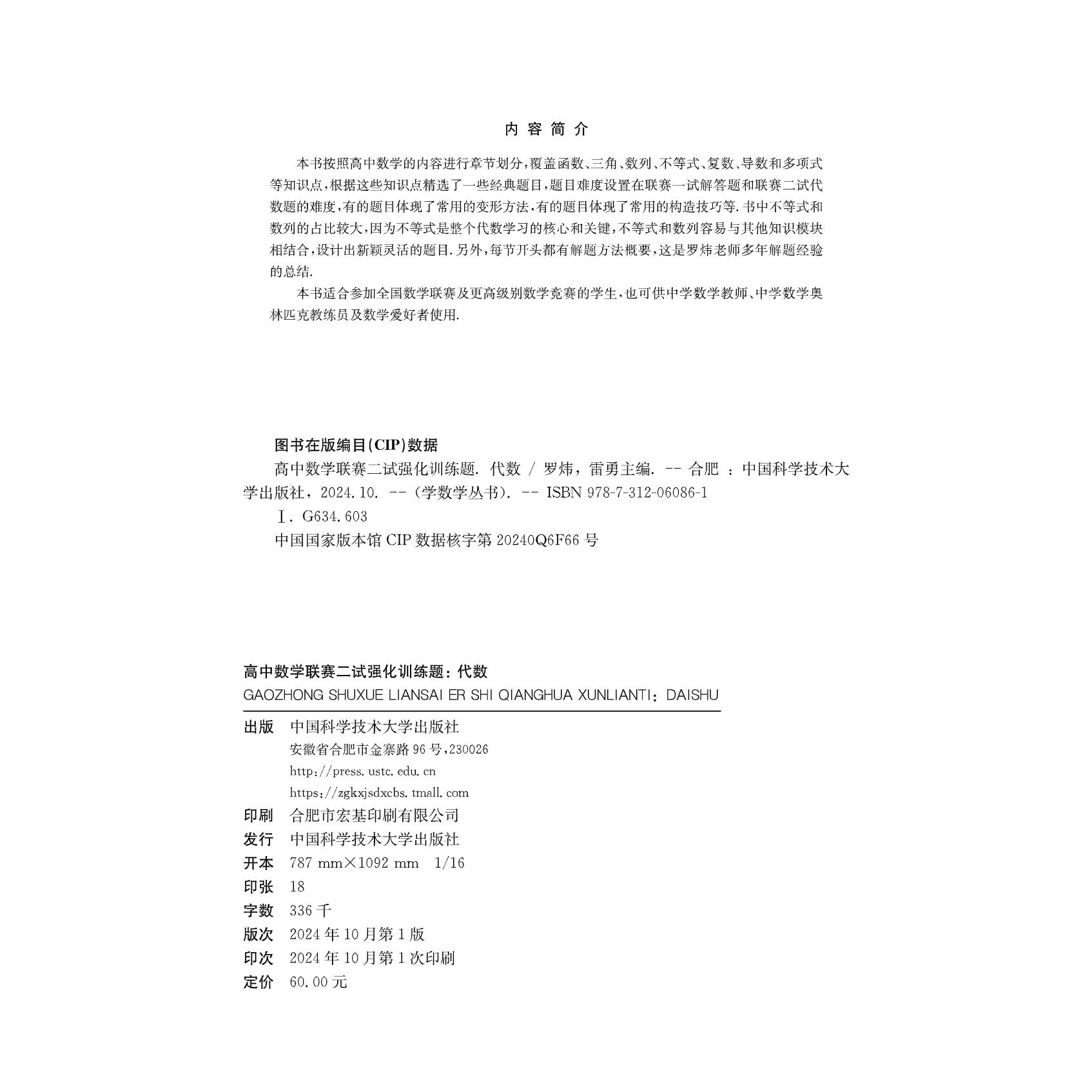 2026高中数学联赛二试强化训练题:代数七年级八年级九年级高中数学联赛奥林匹克竞赛教材模拟试题精选专项训练中国科学技术大学
