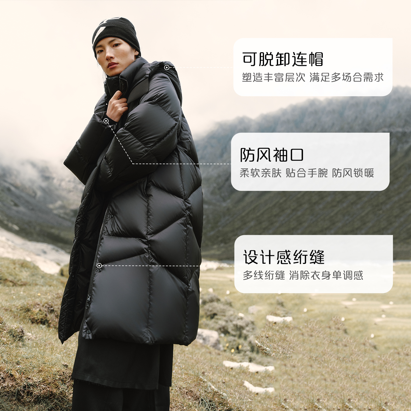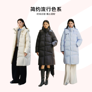 保暖加厚外套 可脱卸连帽时尚 艾莱依2025新款 泡芙羽绒服女秋冬长款