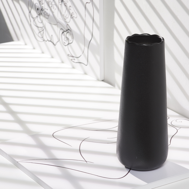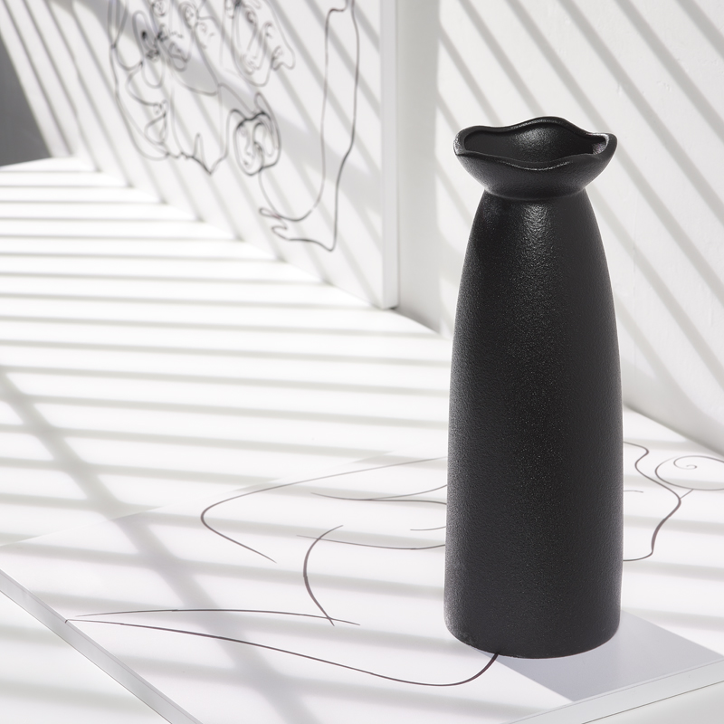 日式 饰家居摆件干花鲜花花器水培器皿 简约黑色花瓶陶瓷客厅插花装