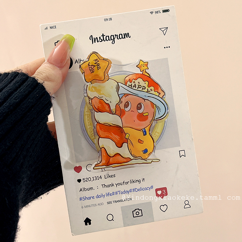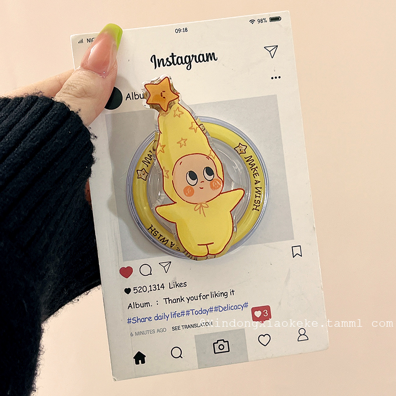 可爱卡通星星人适用Magsafe苹果华为磁吸支架手机背贴气囊懒人可伸缩折叠便携桌面女固定强力吸附指环扣情侣