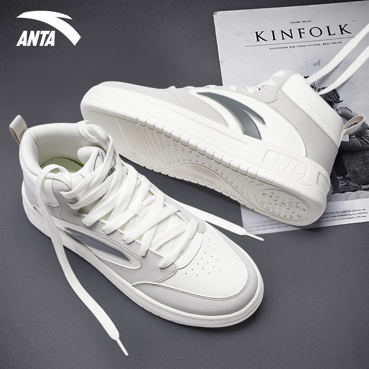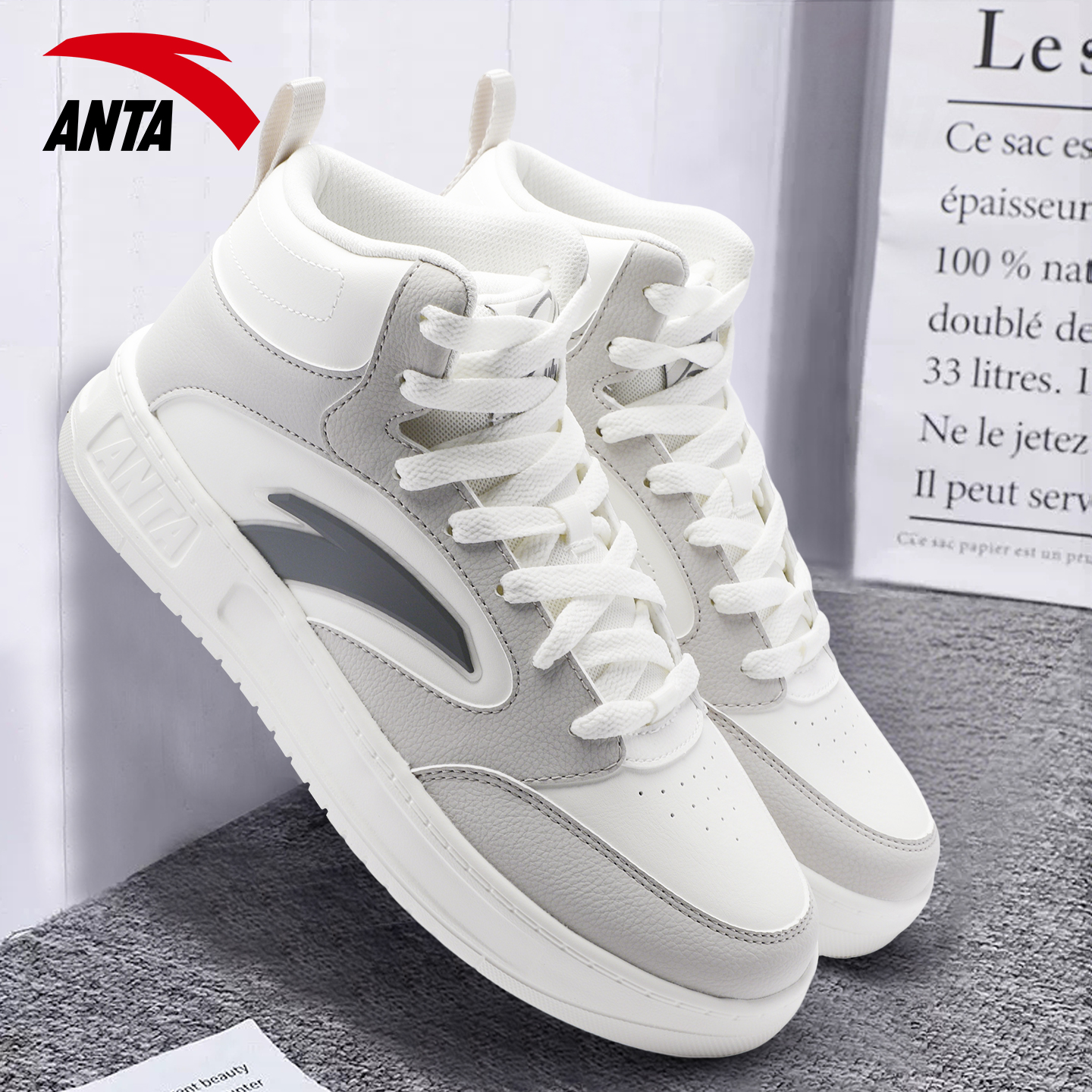 高帮板鞋 学生运动鞋 秋季 潮流休闲皮面防泼水时尚 2025新款 安踏男鞋