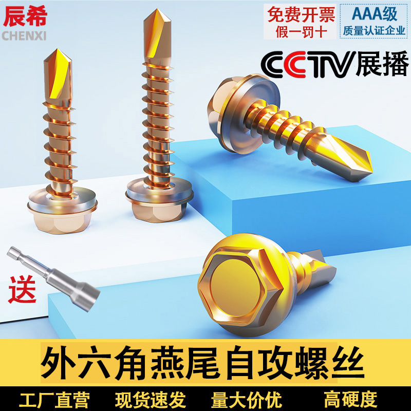 外六角自攻丝螺钉燕尾螺丝钻尾自攻螺丝尾燕自攻加硬外六角自攻钉