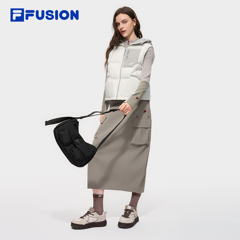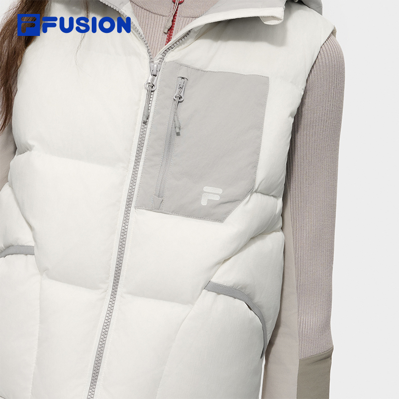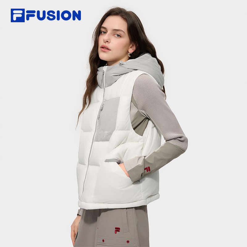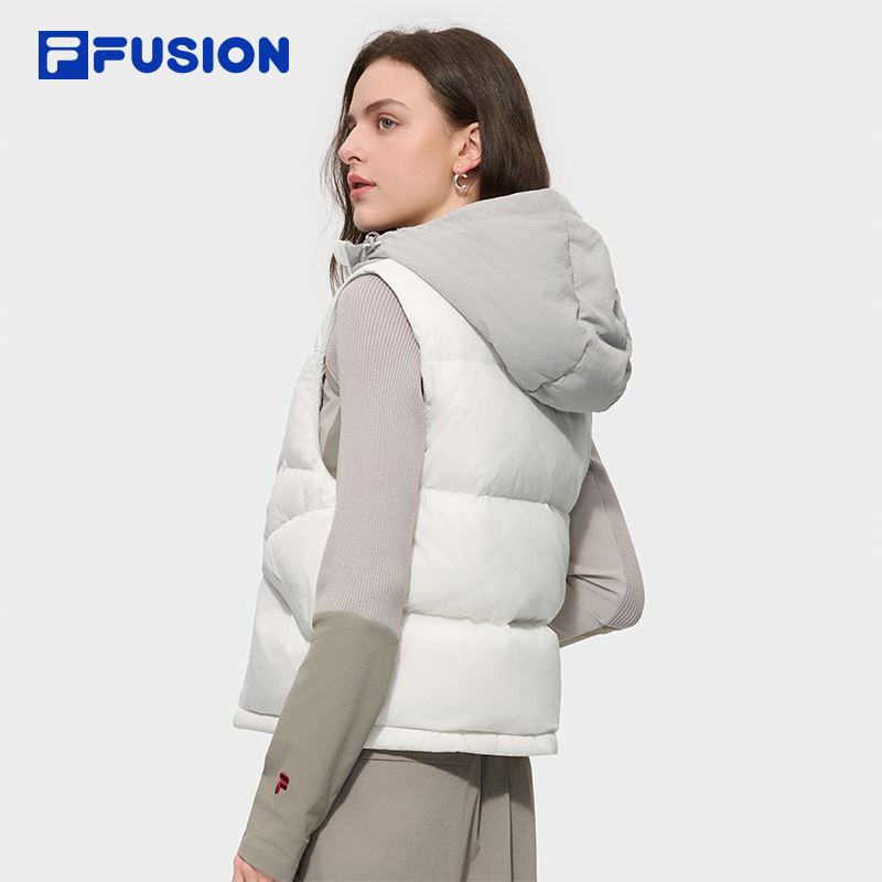 FILA 休闲宽松保暖连帽外套 FUSION斐乐潮牌羽绒马甲女2025冬新款