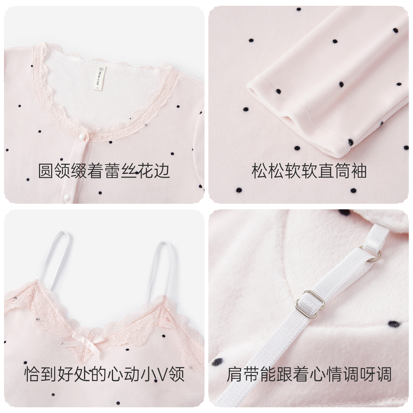 海岛绒睡衣女三件套长袖 带胸垫防凸点法兰绒薄绒家居服牛奶绒 冬季
