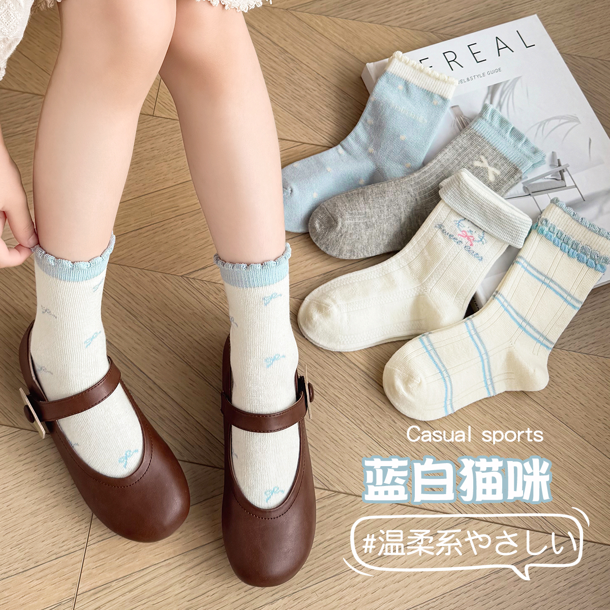 a类棉儿童袜子女童春秋款 薄棉100%纯棉中筒袜女孩韩系花边公主袜