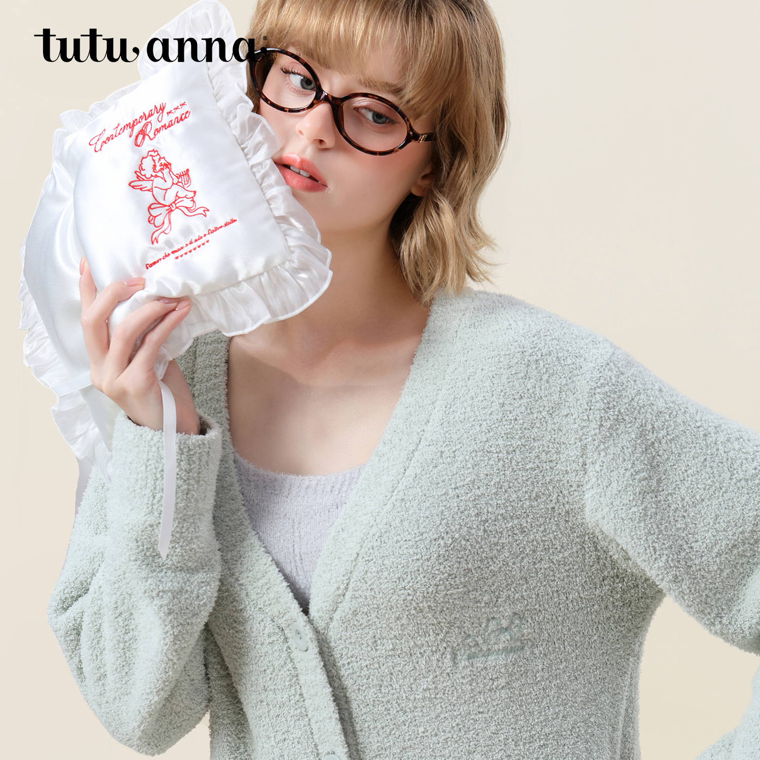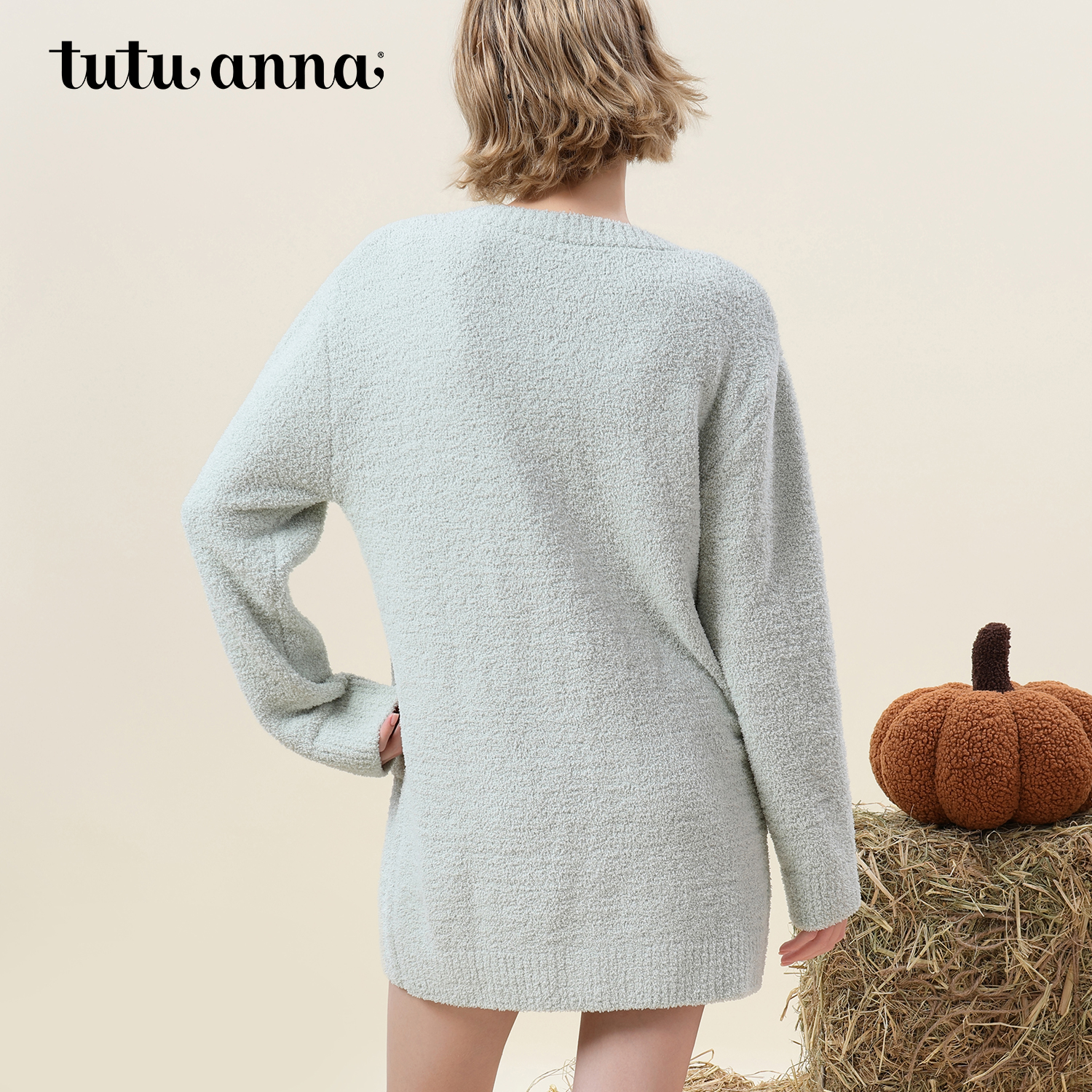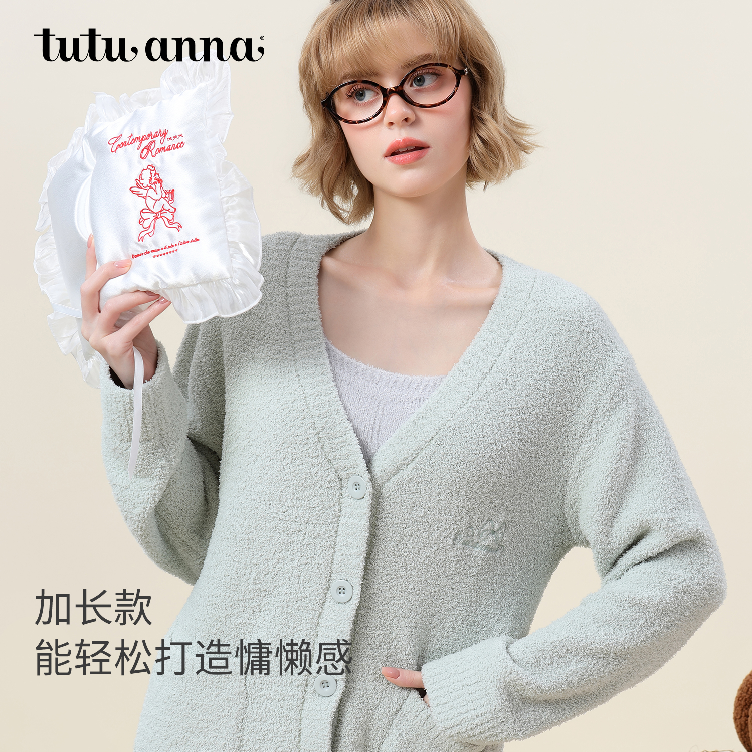 tutuanna秋冬加厚半边绒睡衣女 纯色胸口刺绣可外穿家居服外套女