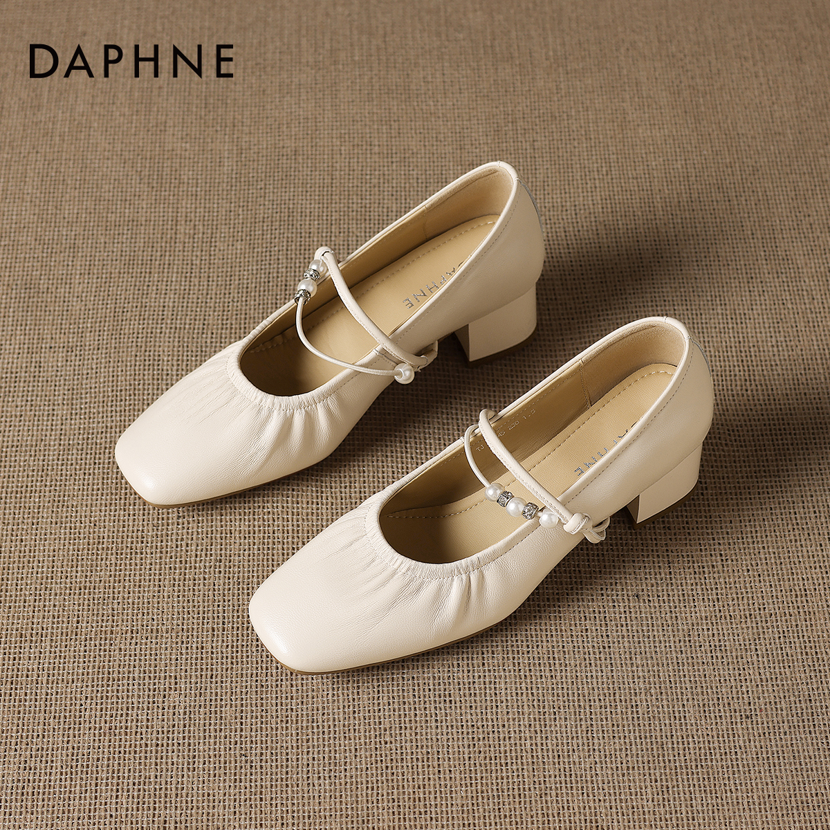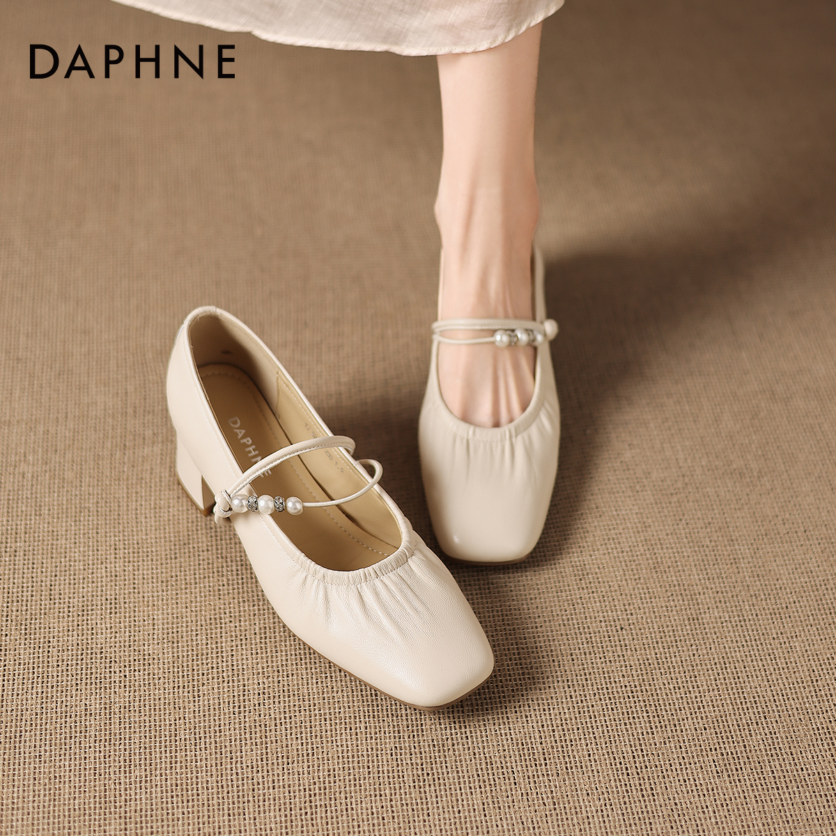 女2025新款 软底粗跟女鞋 夏季 玛丽珍女鞋 子 浅口法式 达芙妮羊皮单鞋