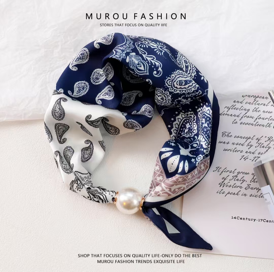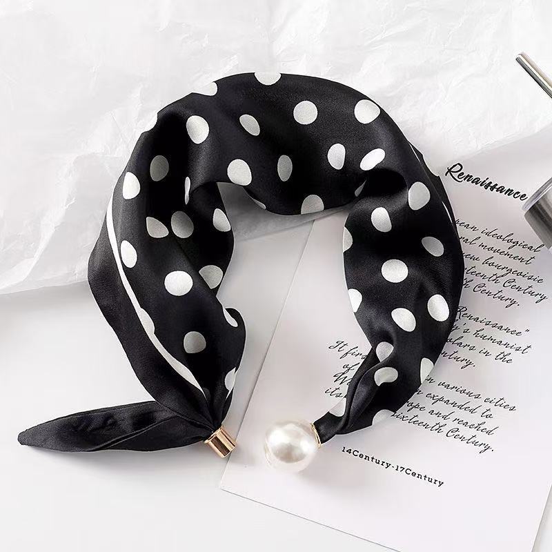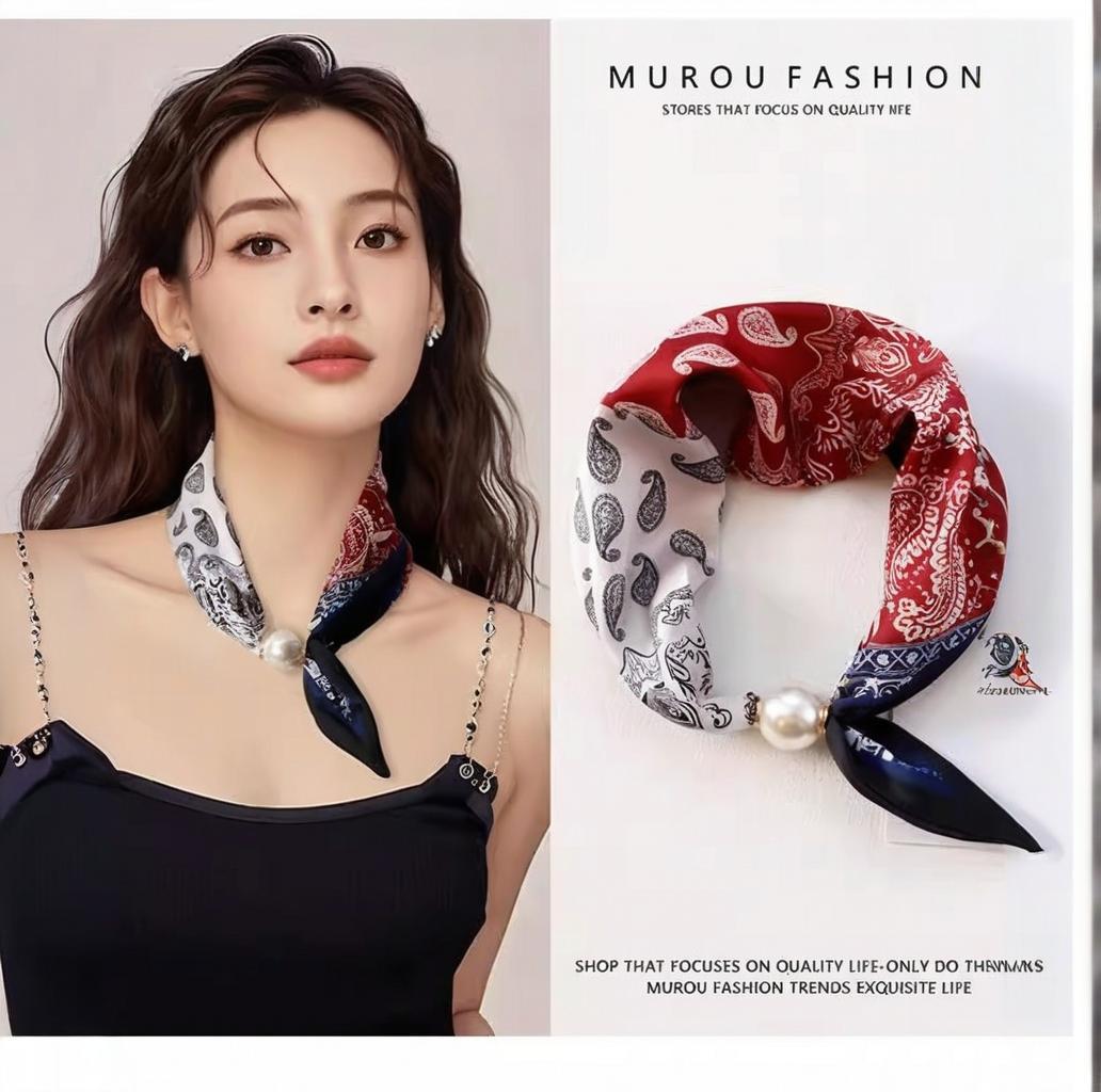百搭护颈长巾旅行拍照围巾 小领巾缎贝珠磁扣时尚 2025新款 丝巾女款