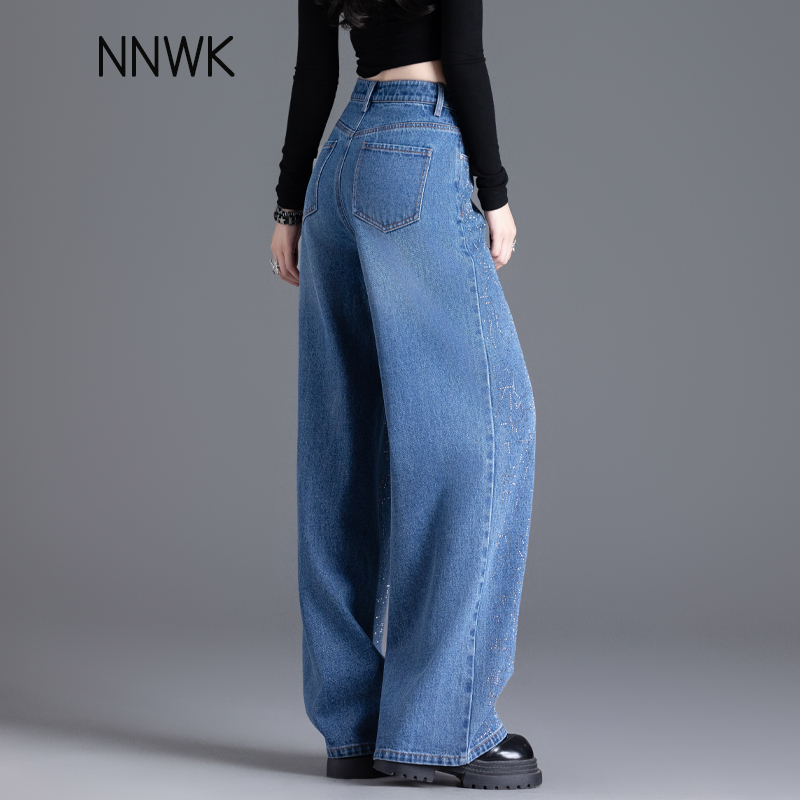 型好看阔腿牛仔裤 子女士直筒裤 女2025新款 高腰宽松弛感裤 春秋季 版