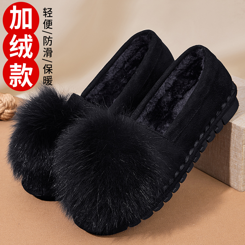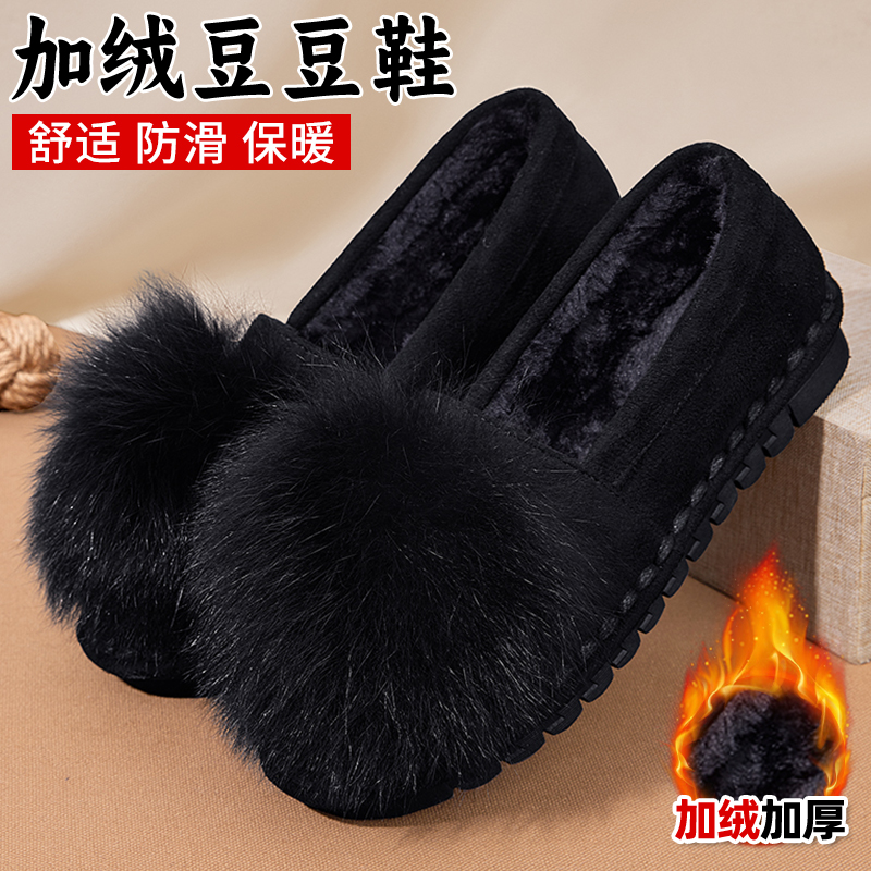 软底一脚蹬女士老北京棉鞋 外穿保暖毛毛鞋 女冬加绒2025新款 豆豆鞋