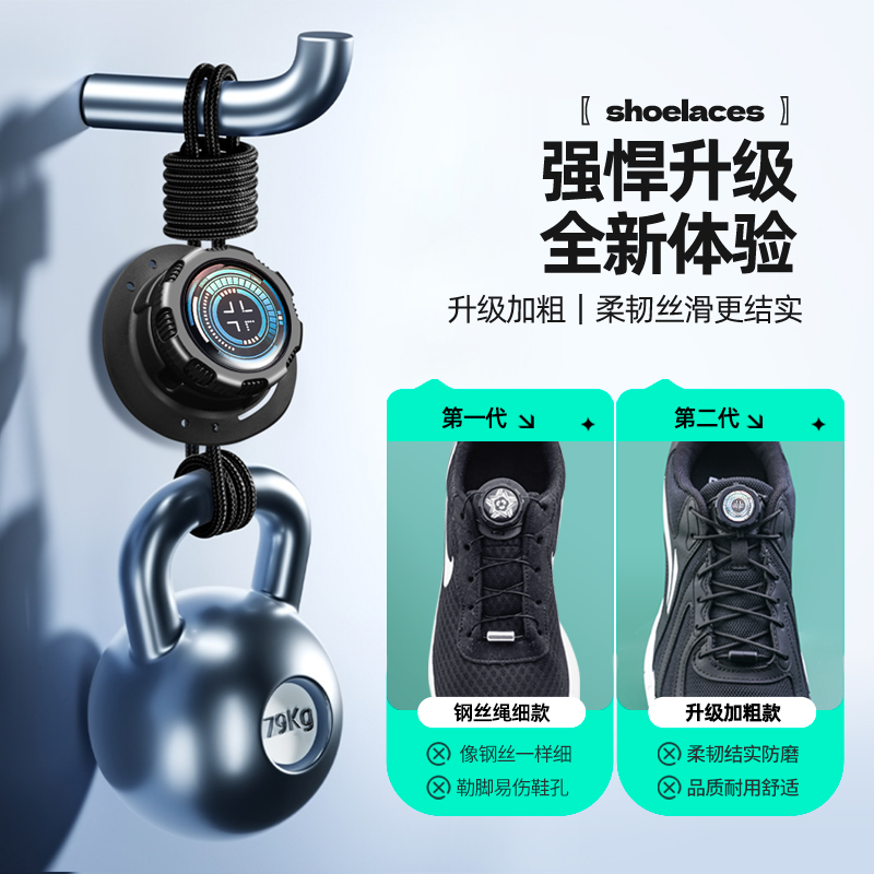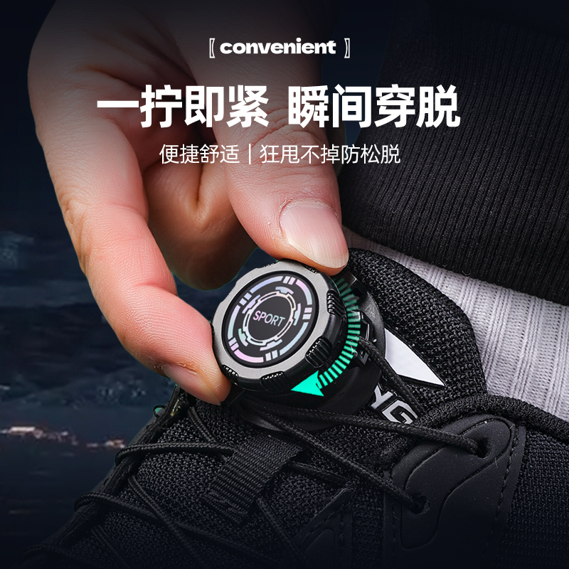 带绳卡扣固定器 黑白色圆形加粗鞋 懒人鞋 带旋转纽扣免系神器男女款