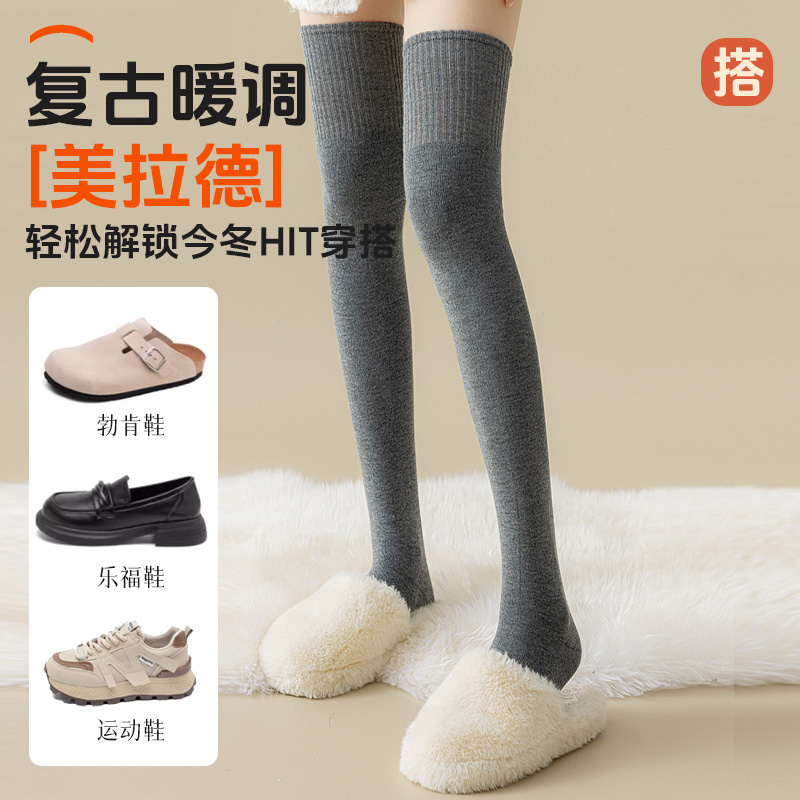 长筒靴袜子女搭配靴子小腿堆堆过膝袜春秋内搭白色大腿长筒袜羊毛