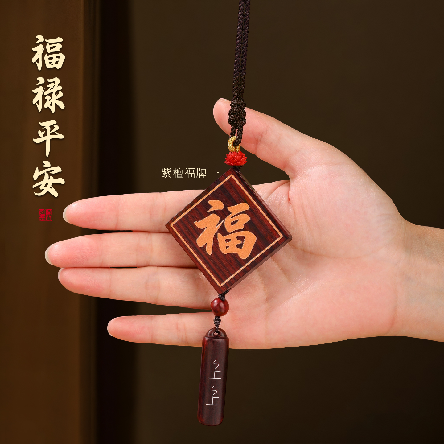 高档国风车挂紫檀平安福牌车内后视镜吊坠车上保平安挂饰2025新款