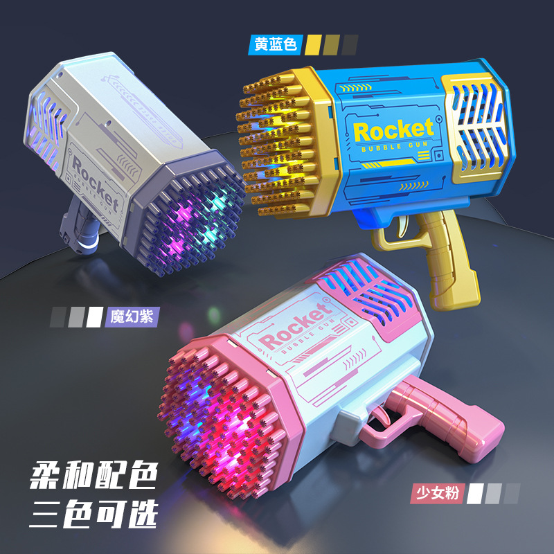 2025爆款 儿童40孔手持火箭筒全自动加特林吹泡泡枪男女孩户外玩具