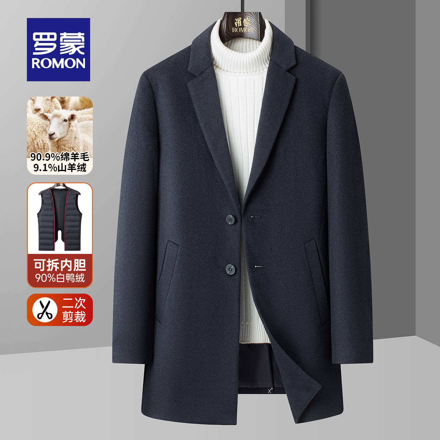 可拆内胆毛呢大衣2025秋季 罗蒙男士 一衣三穿外套b 商场同款