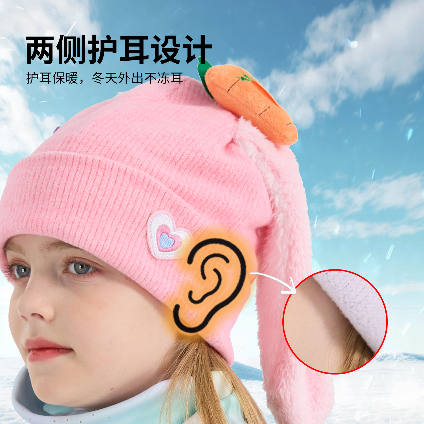 KKN儿童帽子秋冬可爱立体兔子护耳针织帽包头防风保暖2025年新款