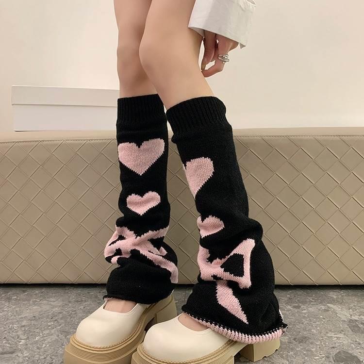 袜子小腿袜jk制服阔腿针织袜套千禧辣妹爱心甜酷堆堆袜洛丽塔腿套