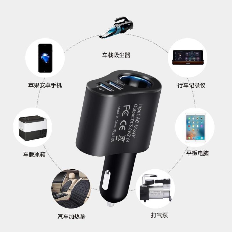 车载充电器手机超级快充头点烟器一拖二转换插头车充插座汽车接口