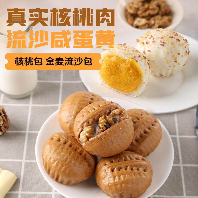 安井核桃包广式 早餐金麦流沙包食品面点速食半成品包点儿童早餐
