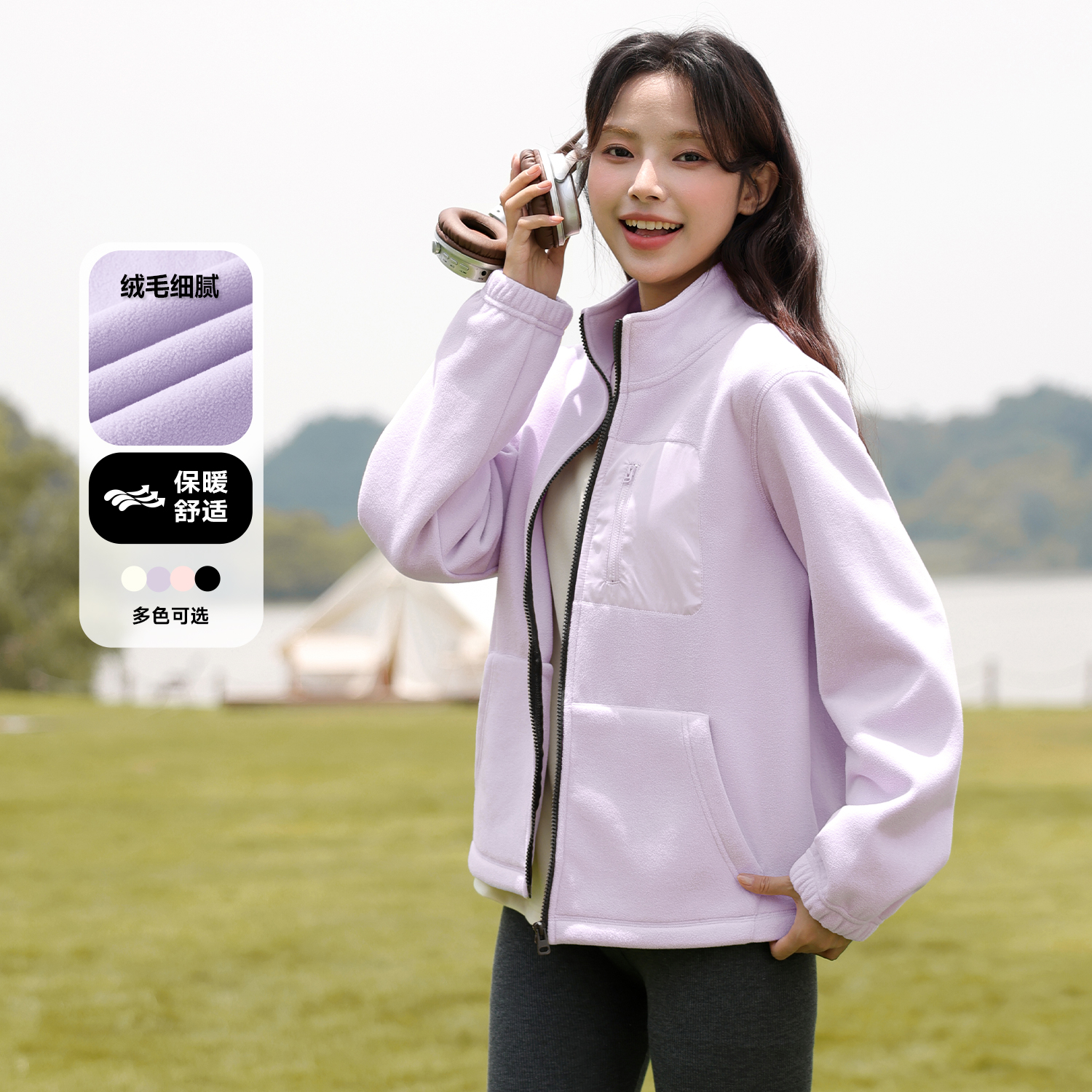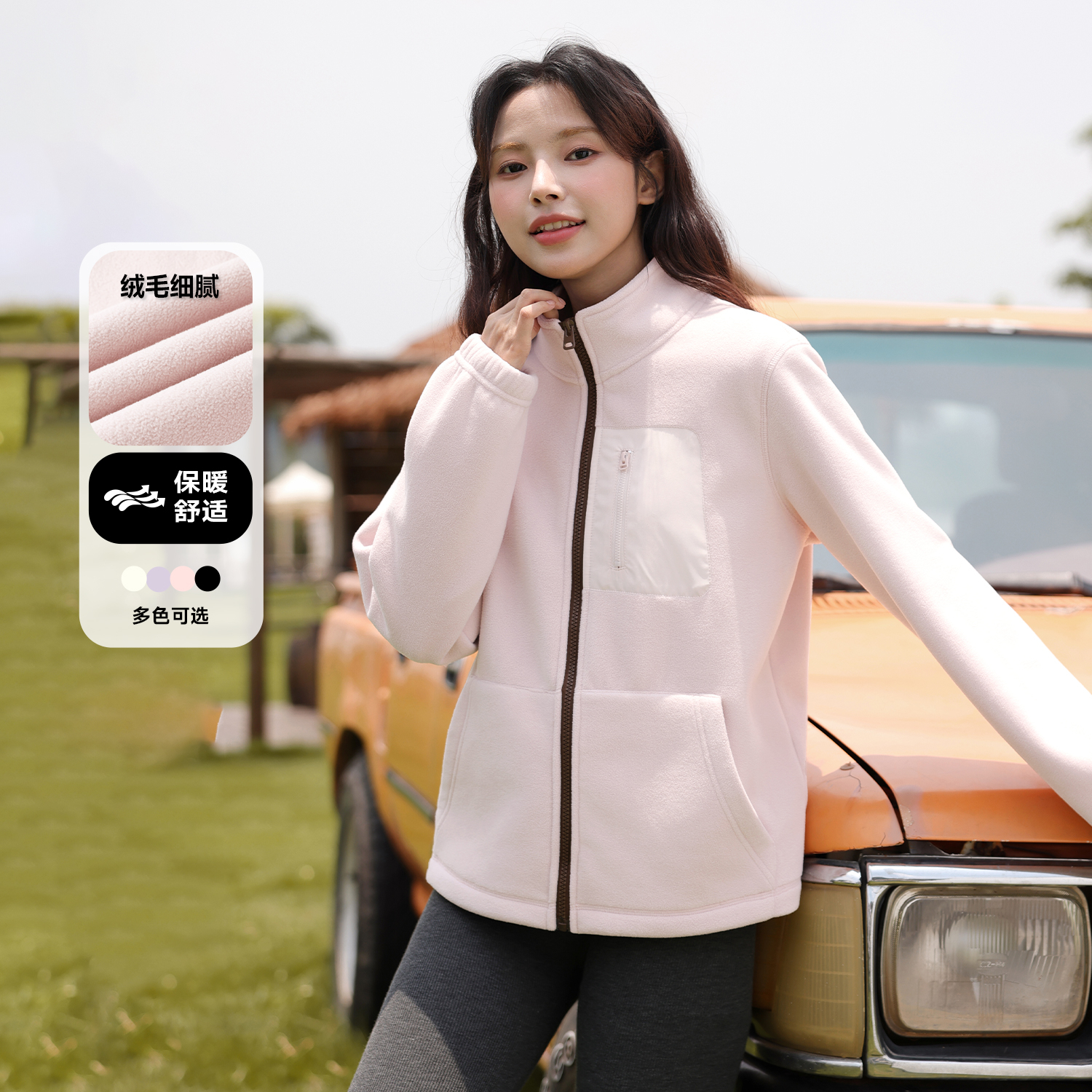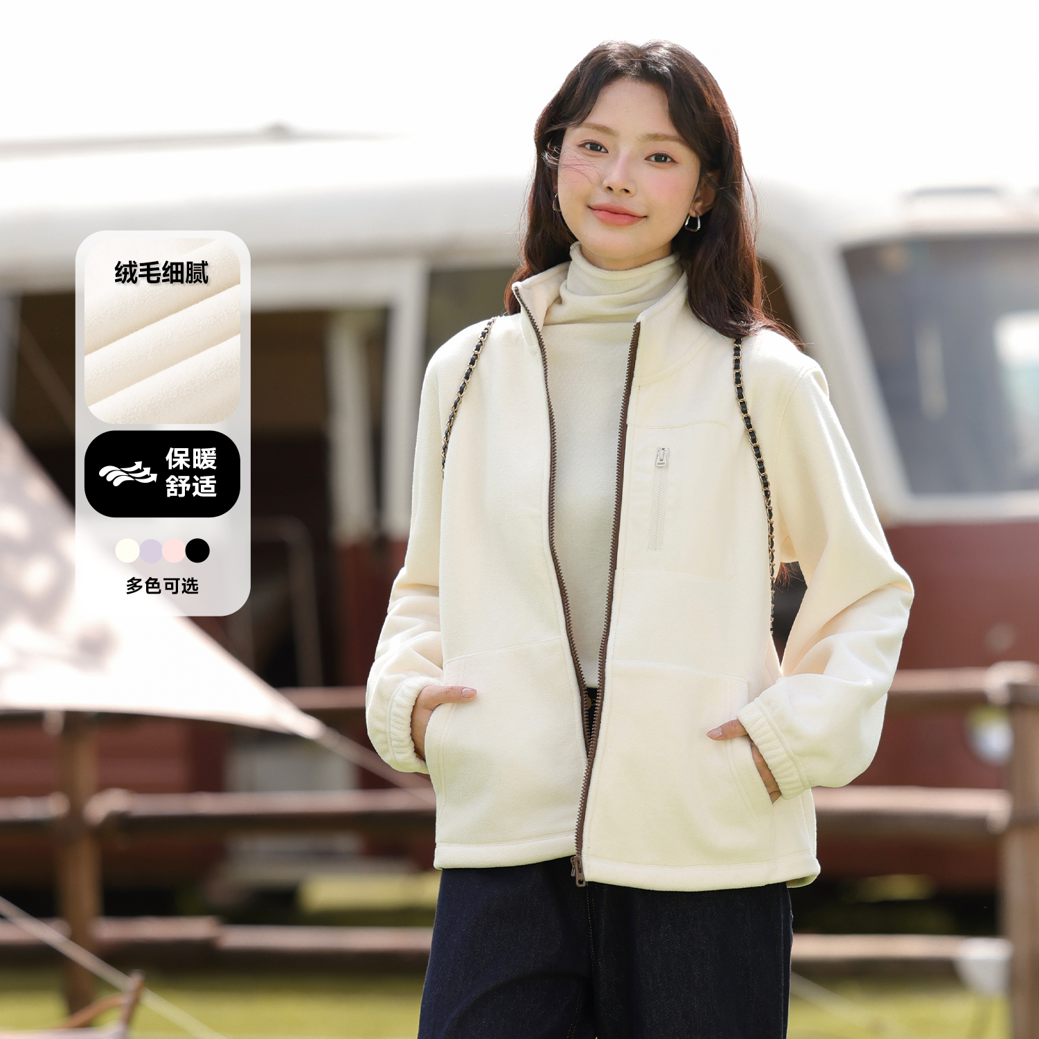 宽松冲锋衣内胆上衣H 新款 班尼路黑色开衫 拉链加绒外套女2025冬季