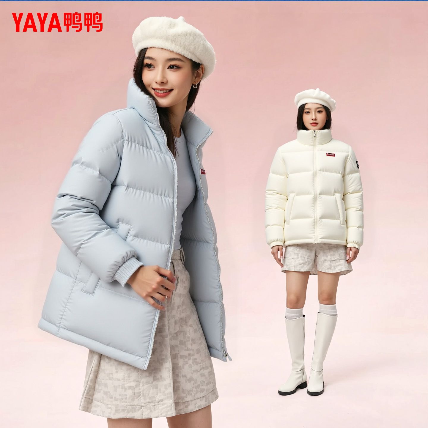 拉链简约女士鸭绒轻薄短款 长袖 羽绒服 翻领短款 YAYA鸭鸭2025新款