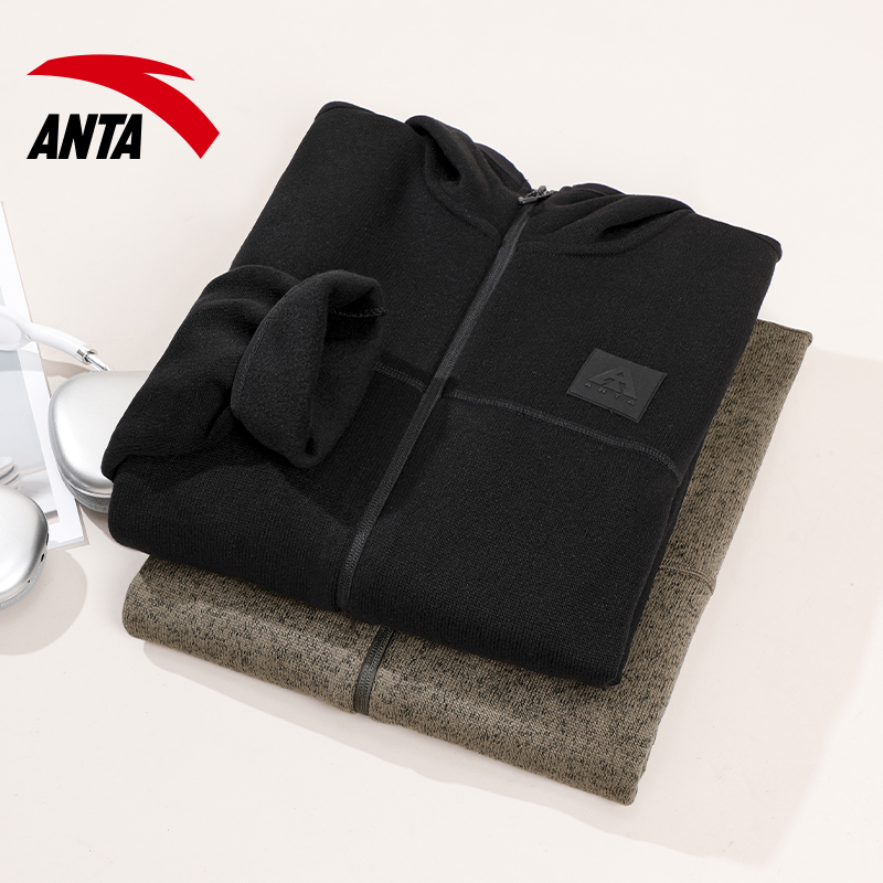 针织上衣立领夹克开衫 男装 卫衣休闲加绒运动服 新款 特步外套男秋季