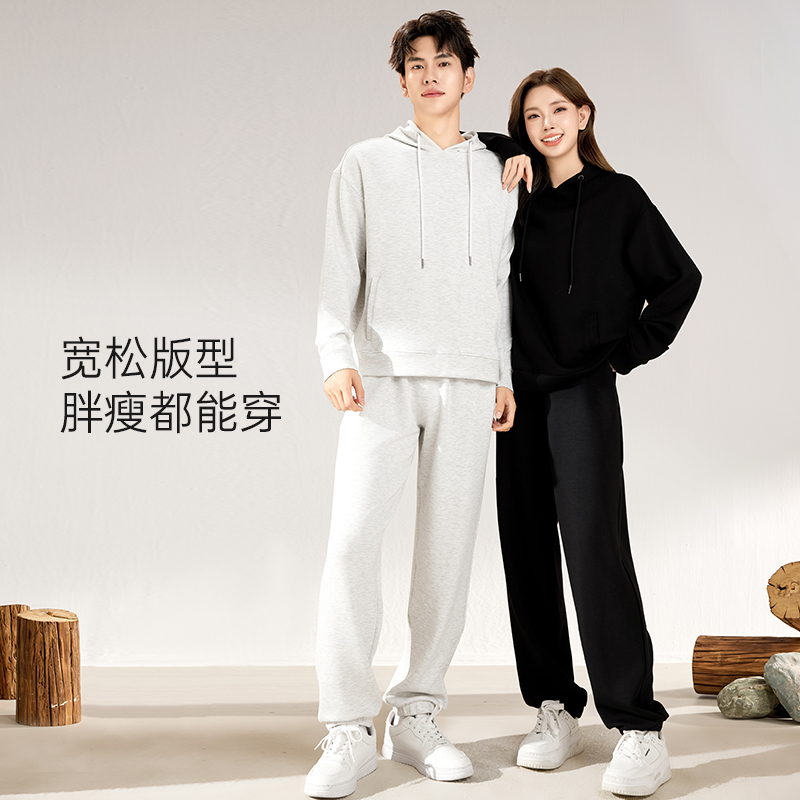 休闲运动男女同款 爱帝情侣款 轻薄空气层卫裤 早秋新款 连帽卫衣套装