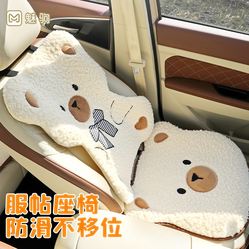 汽车坐垫保暖毛绒可爱卡通座垫冬季 女神车半包防滑座椅套车载座套