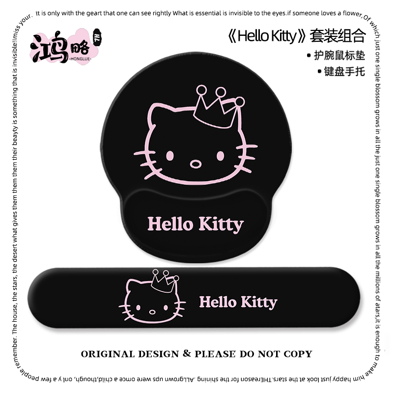 HelloKitty护腕鼠标垫黑粉凯蒂猫键盘手托女生高颜值硅胶办公软垫