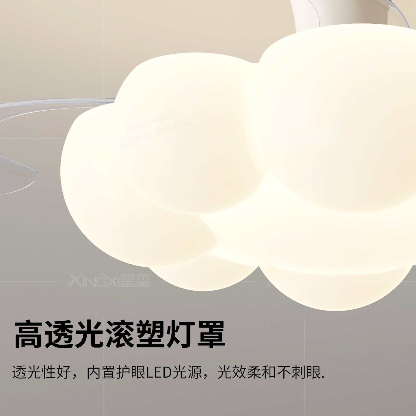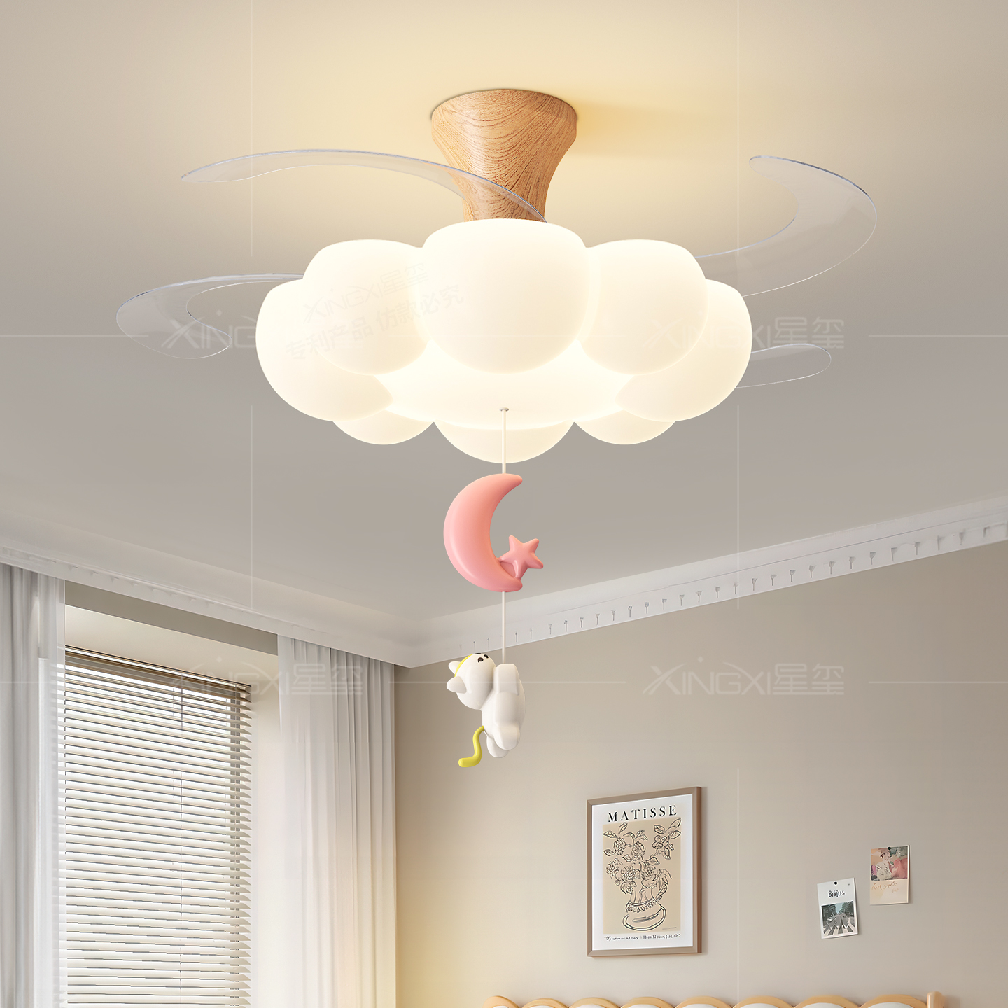 儿童房云朵隐形风扇灯奶油风卧室吊灯卡通静音电扇一体风扇灯