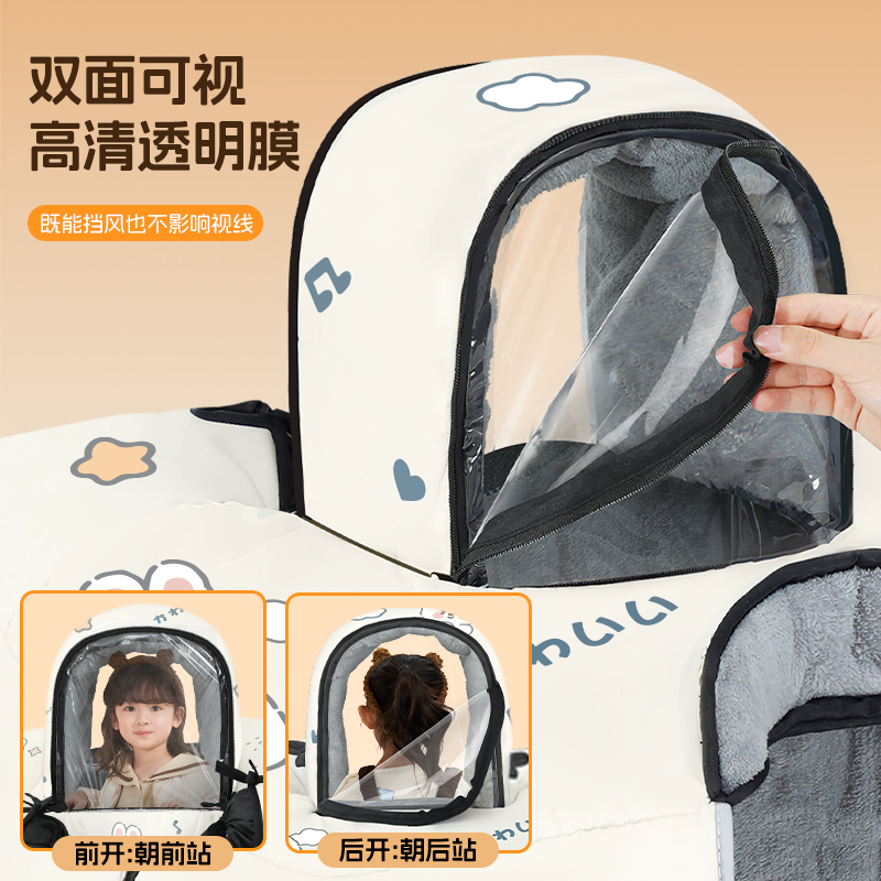 通用 加绒加厚电瓶摩防水防风罩四季 亲子款 电动车挡风被带小孩冬季