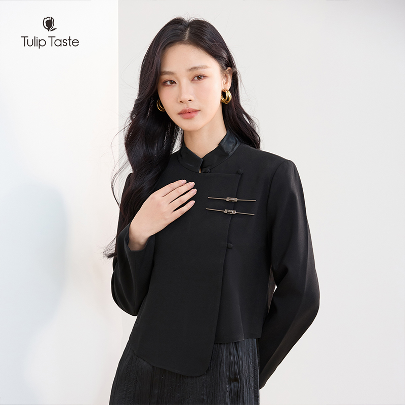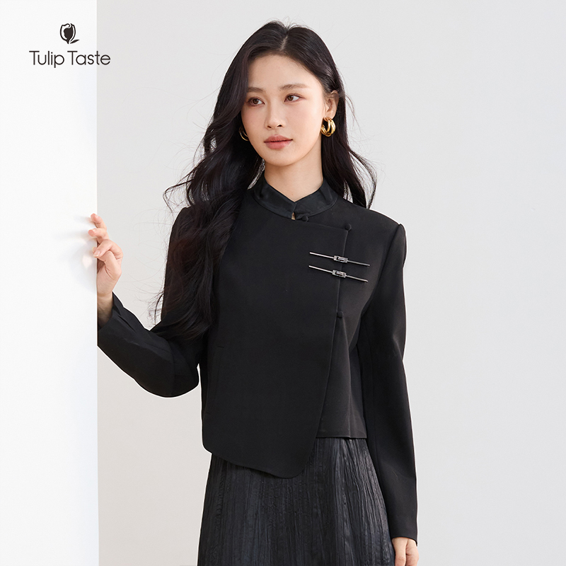 显瘦不规则短款 郁香菲新中式 立领修身 时尚 上衣 外套女气质通勤秋季