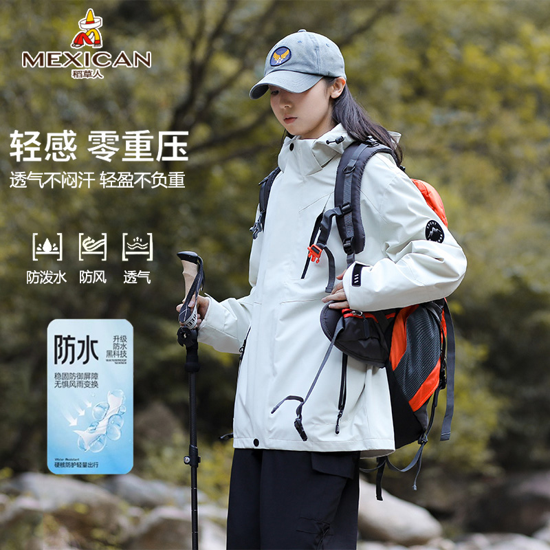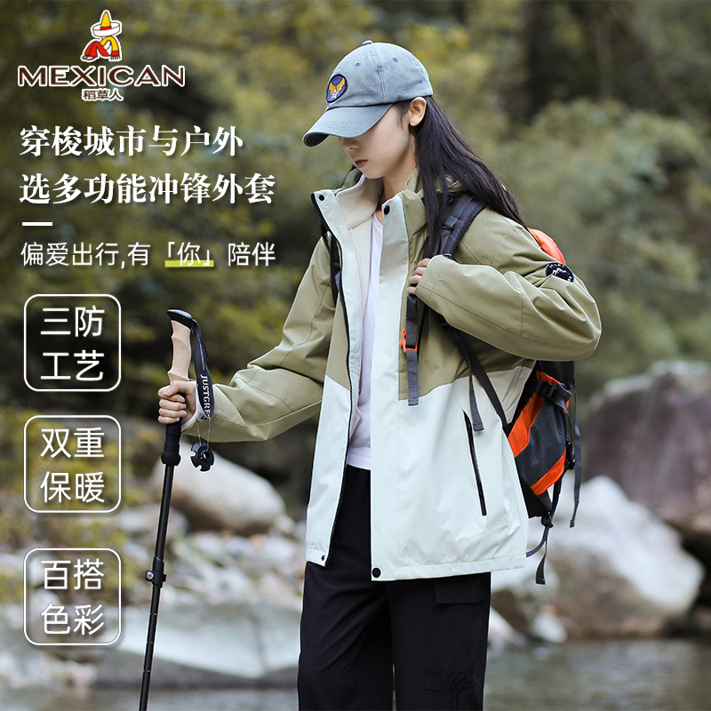 拓路者户外新款 小个子冲锋衣女可拆卸三合一防水防风团购硬壳外套