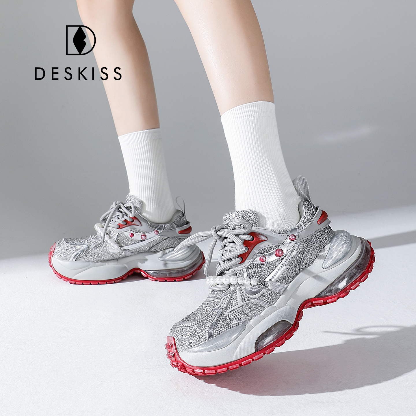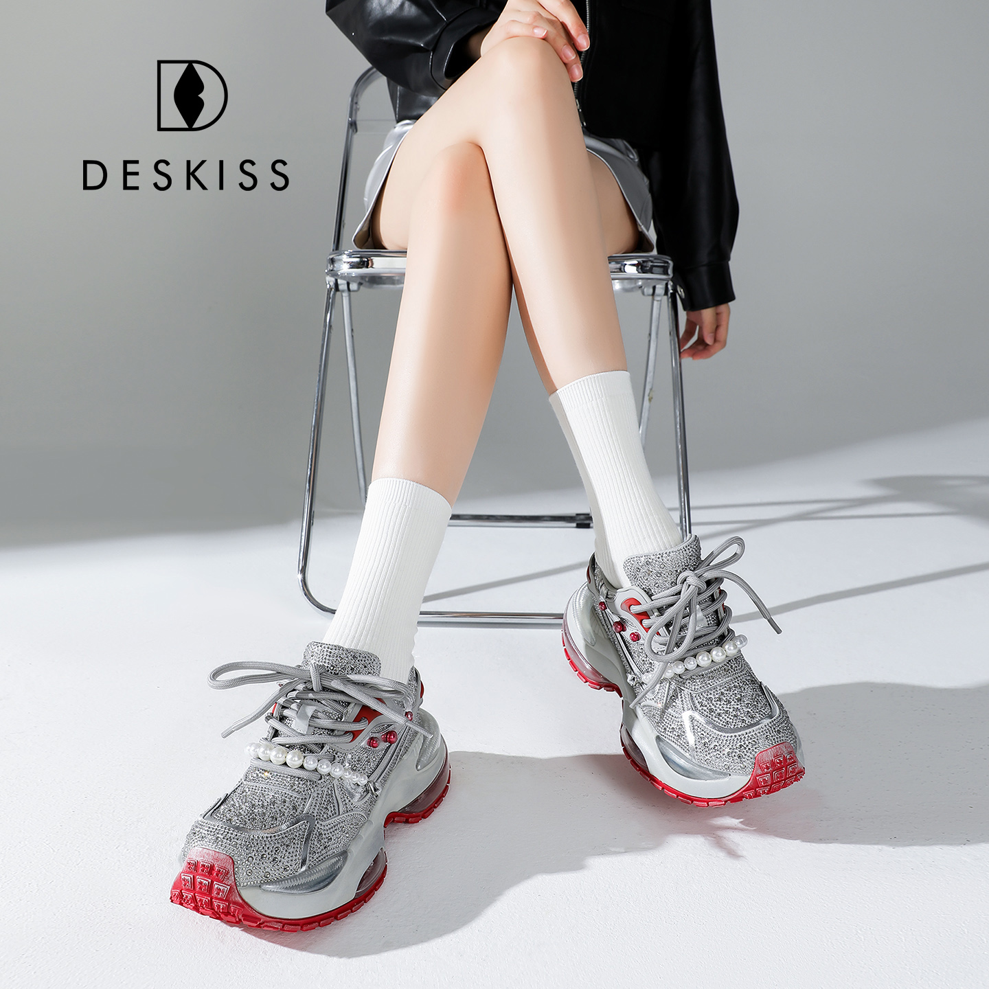 厚底增高休闲鞋 秋女鞋 银色老爹鞋 时尚 斯凯奇熊猫鞋 运动鞋 2025新款