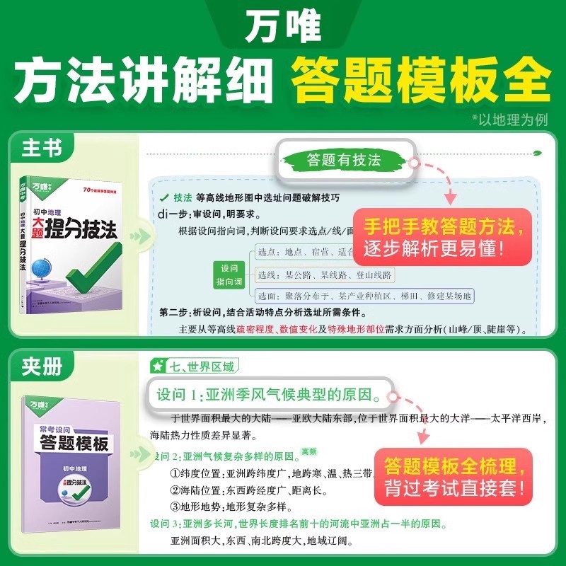 万唯中考大题提分技法小四门答题模板政治历史初中基础知识考点语数英七年级八九年级万维总复习资料书文言文物理计算化学技巧解题