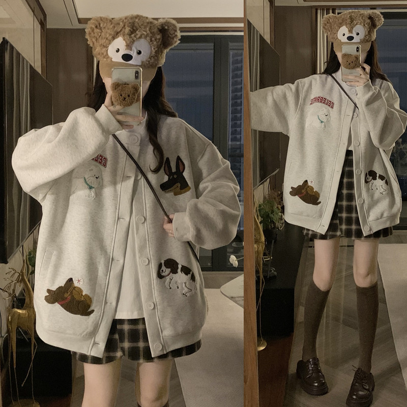 外套针织衫 连帽拉链短款 百搭上衣潮 女毛衣开衫 唐狮2025秋冬新款