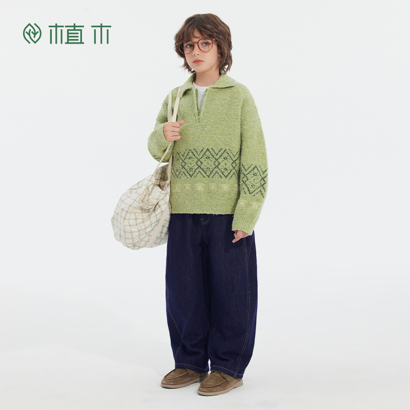 子潮 儿童男孩直筒宽松裤 男童春秋泼墨阔腿黑色弯刀牛仔裤 2025新款