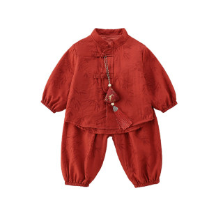 长裤 Kmi满月百天周岁男童套装 礼服长袖 宝宝中式 婴幼儿分体套 秋装