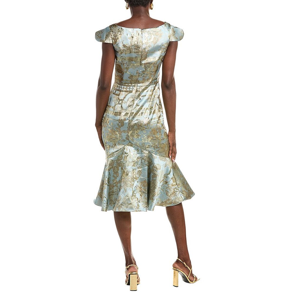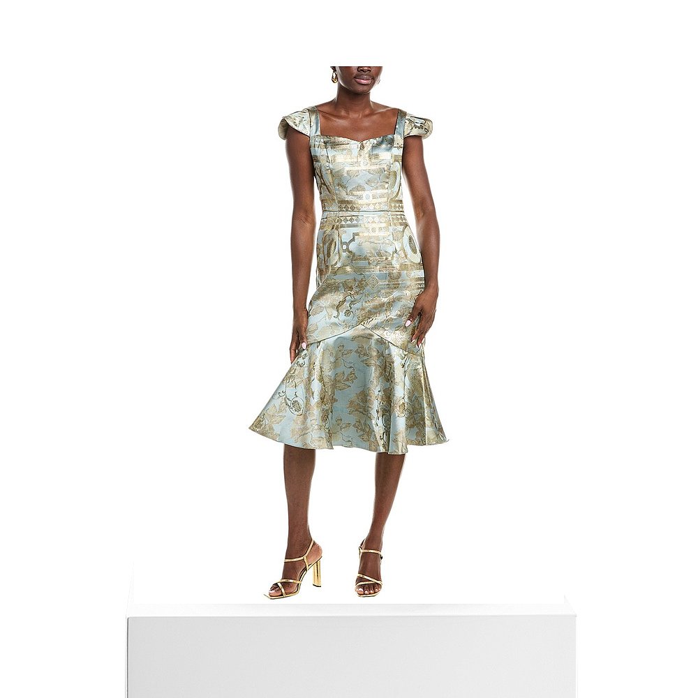 BCBG25早秋新款 流行设计感花卉印花花边褶皱立领系带女连衣裙 时尚