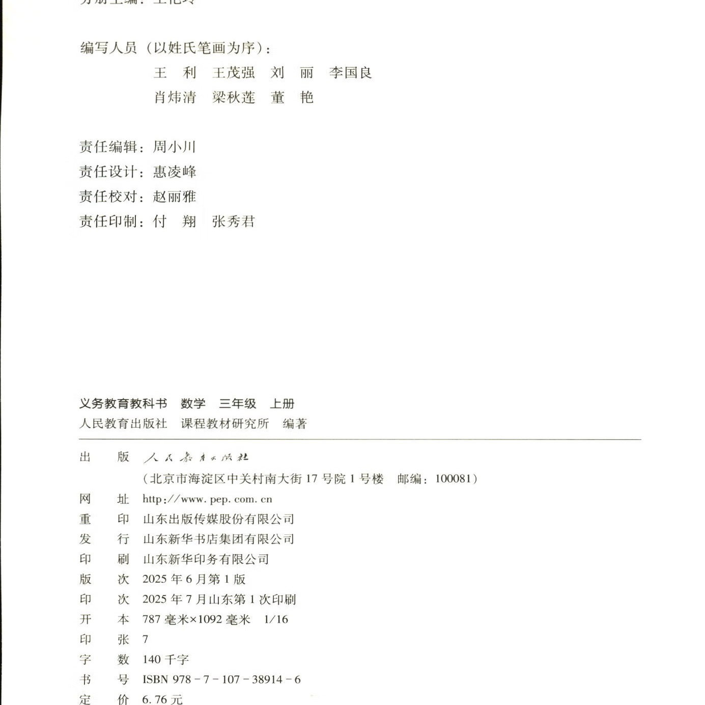 2025新版 全新 小学三年级上册数学课本六三制人教版 3年级上学期数学教材小学课本全新版 社义务教育教科书 人民教育出版 新华正版