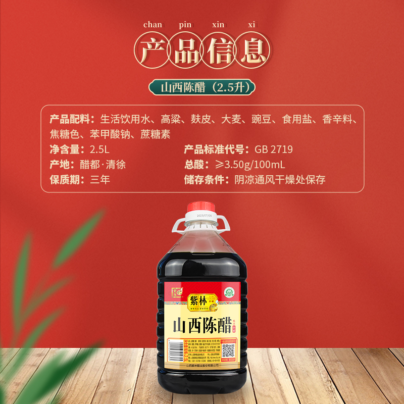 紫林山西陈醋3.5度2.5L山西特产凉拌炒菜烹饪大桶5斤家用酿造食醋
