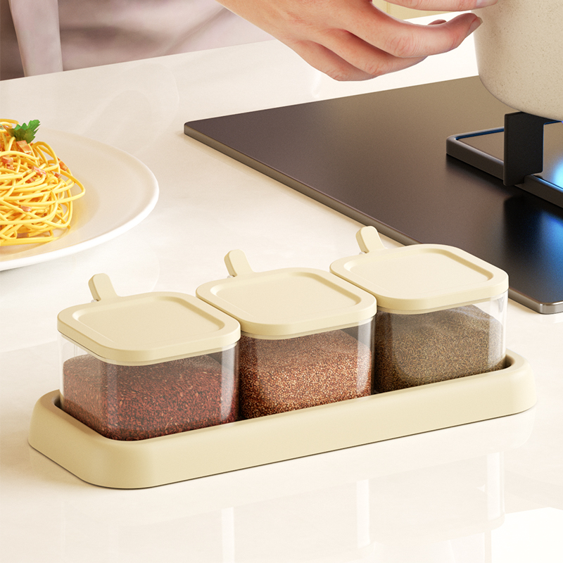 厨房奶油风调料盒家用盐味精分装 调味瓶佐料组合防潮多功能收纳盒