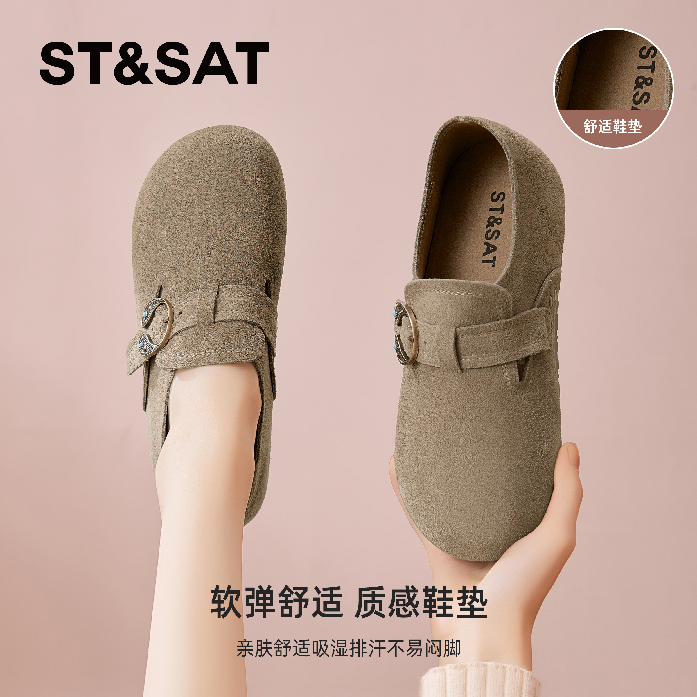 女2025新款 休闲鞋 秋季 一脚蹬懒时尚 复古平底单鞋 星期六全包勃肯鞋